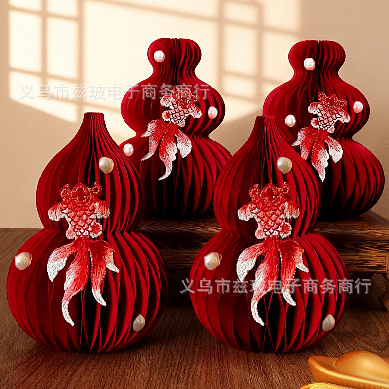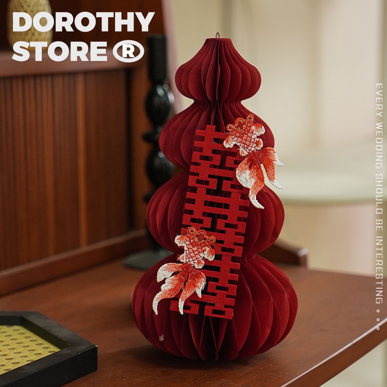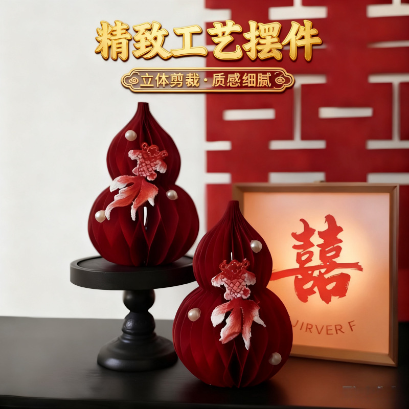 结婚喜庆立体葫芦蜂窝摆件客厅桌面婚房布置新娘锦鲤装饰摆台订婚