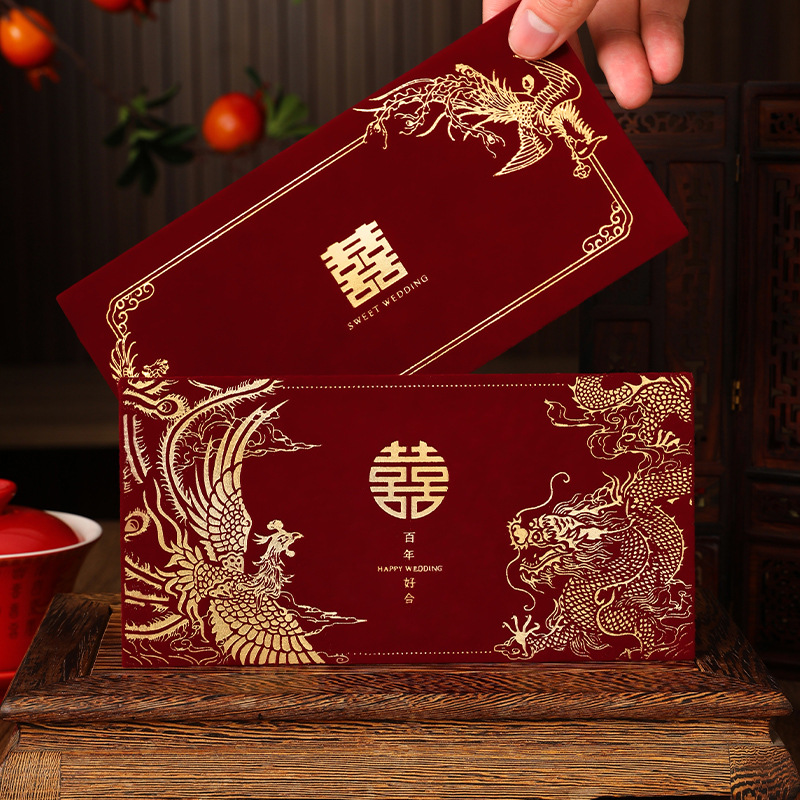 高級感のある大判の赤い封筒、結婚式や婚約式の特別な贈り物に最適な新作