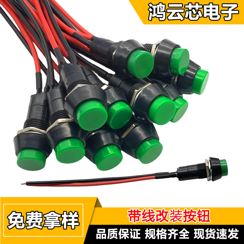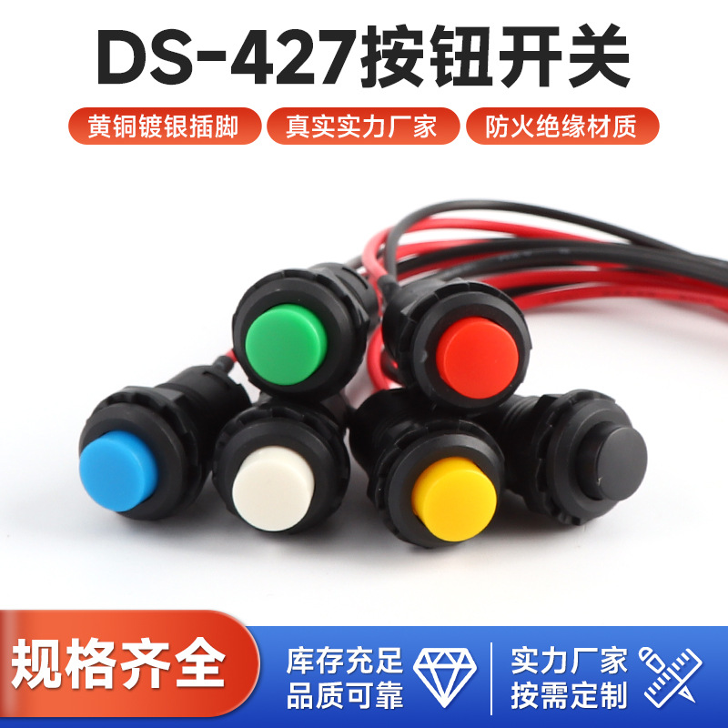12MM带线按钮开关DS-427 428自锁/复位圆形按键开关红黄蓝绿黑