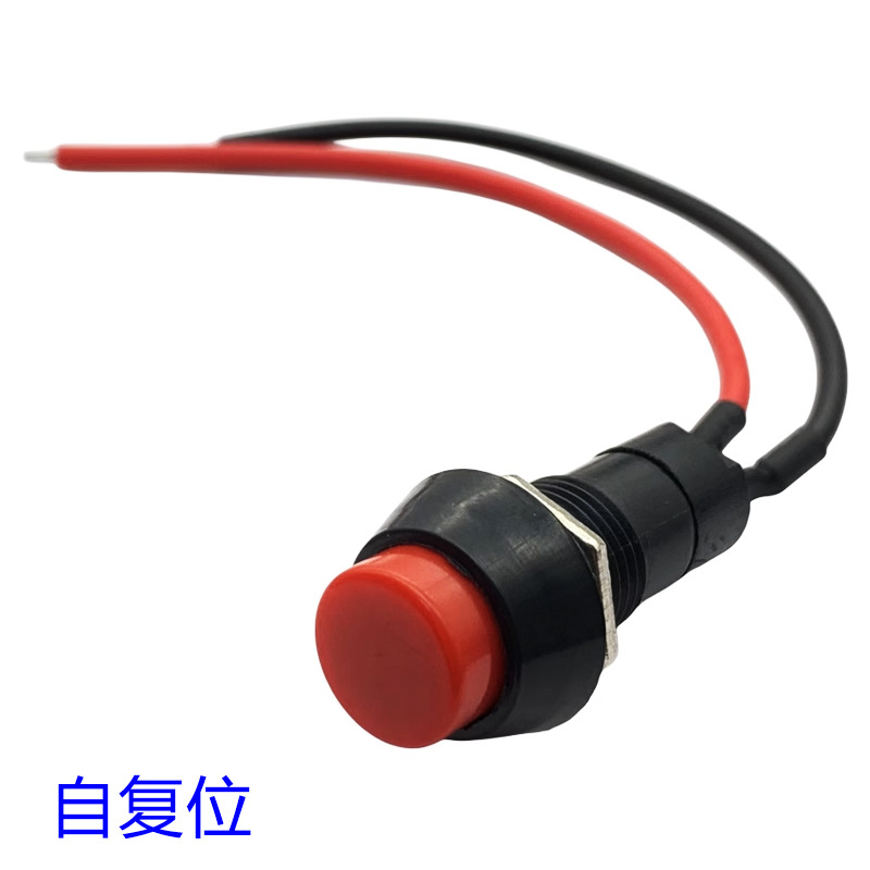 12MM金属押しボタンスイッチ自动リセットフラットヘッド高さボタンスイッチワイヤ付き防水押しボタンスイッチ