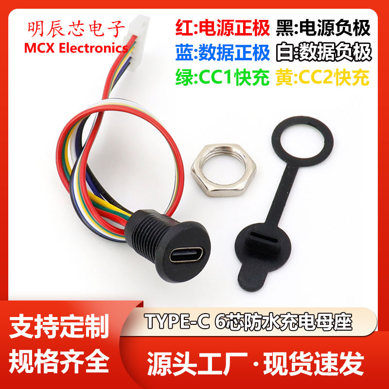 TYPE-C母座溶接線USB C携帯電話充電口TPC防水typec2 p直圧テールプラグ電源座