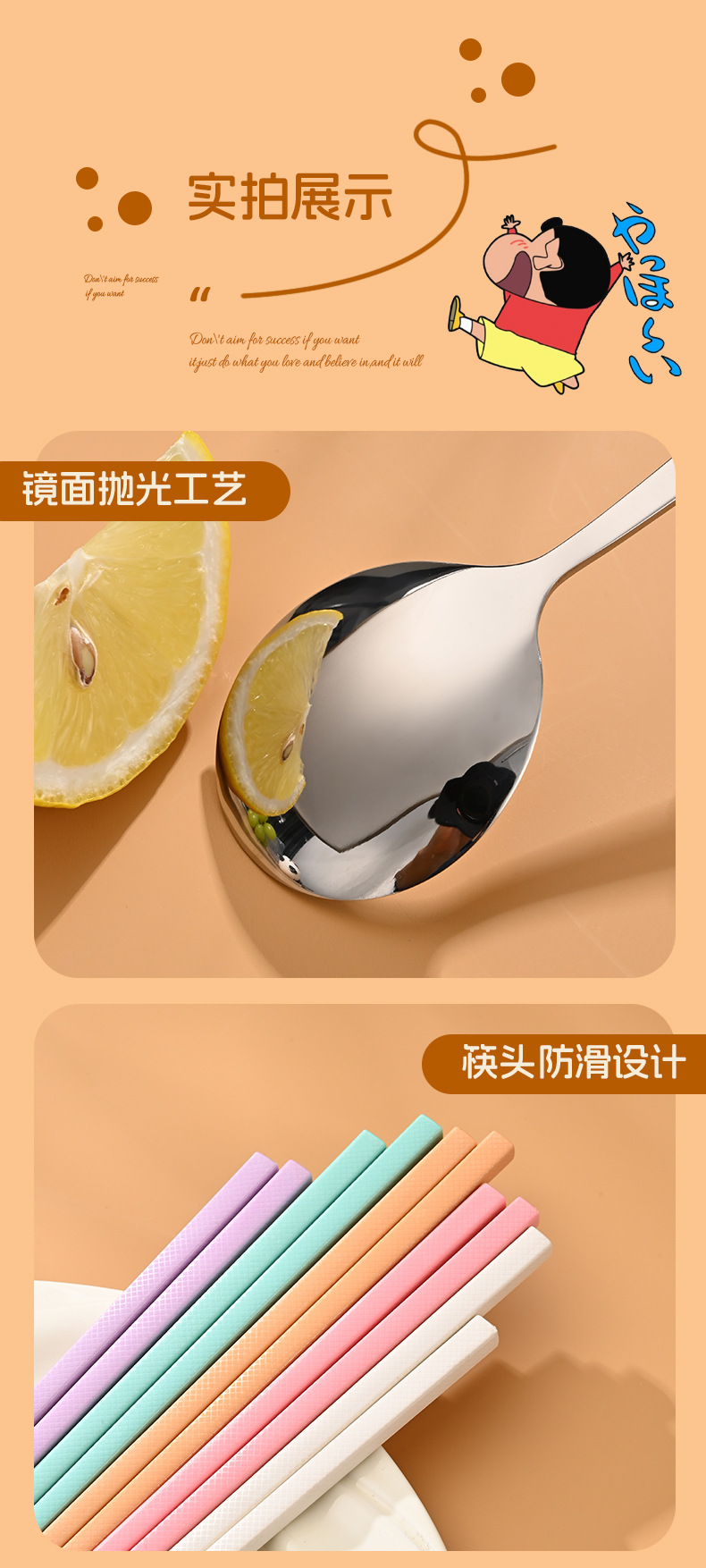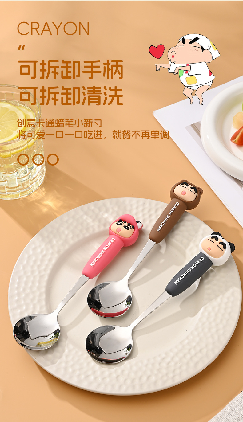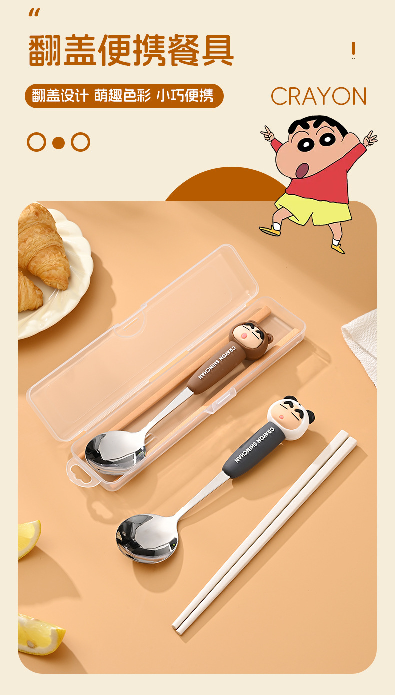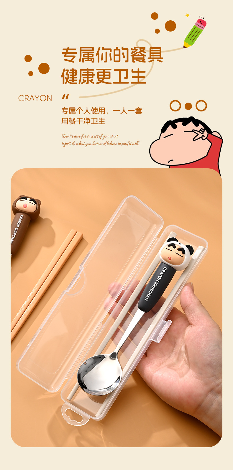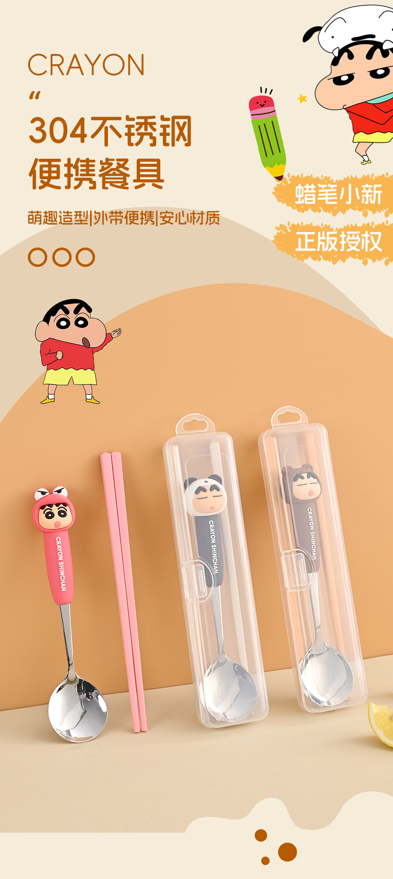 304ステンレス携帯食器セットアニメ正規版クレヨンしんちゃんサラリーマンスプーンフォーク食器3点セット