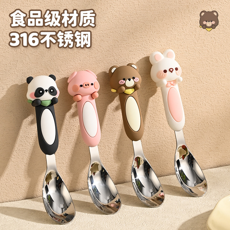 316ステンレスアニメの元宝のスプーンのアイデアのかわいい風の子供の食事のスプーンのブタのウサギの補助のスプーンのスプーン