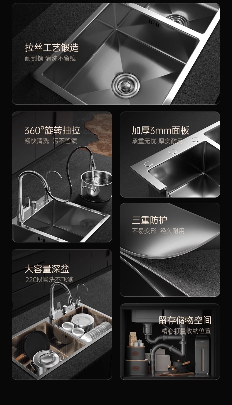 仕様 SUS304材質両溝72x40cm,SUS304材質両溝75*41CM,SUS304材質両溝78*43CM,SUS304材質両溝80*45CM,SUS304材質両溝85*45CM,SUS304材質両溝88*48CM,SUS304材質両溝92*48CM,SUS304材質両溝100*45CM,一部のサイズはお客様に交換を依頼することができます (ブラック-ガングレー)