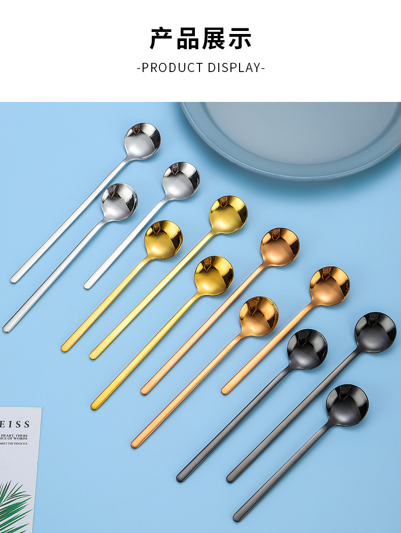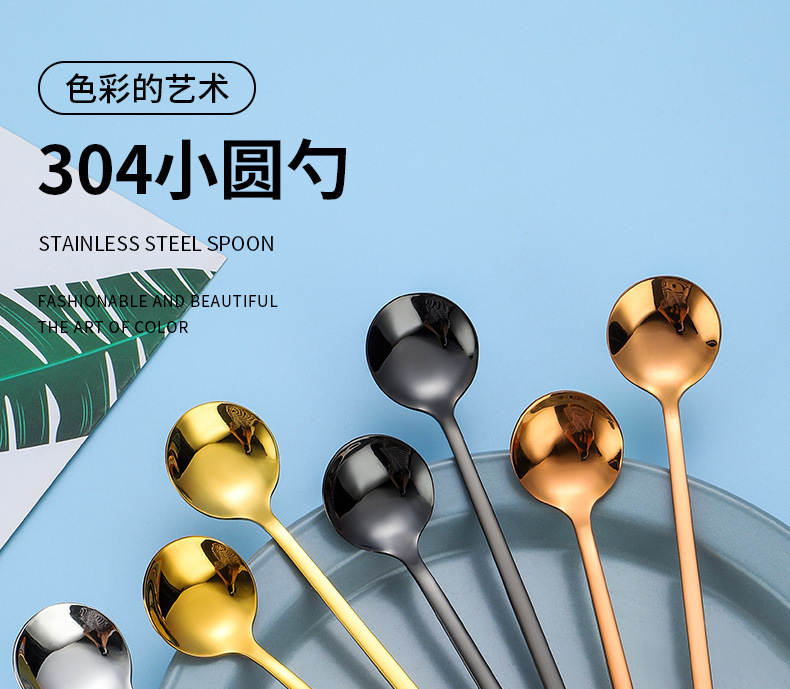 304 ステンレス鋼スプーンロングハンドルコーヒースプーン小さなラウンドスプーンツバメの巣デザートスプーンハニースプーンマグミキシングスプーン
