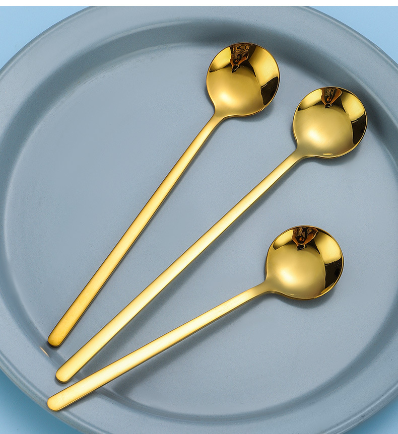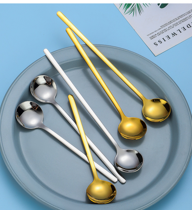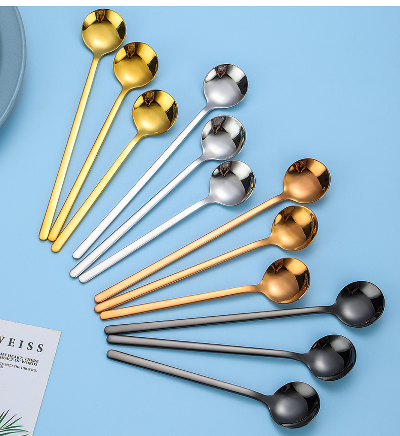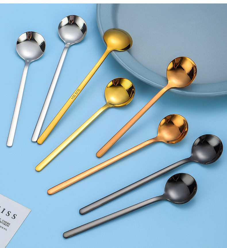 304ステンレスの韓国式の小さい丸いスプーンのアイデアの長い柄の粉ミルクのコーヒーのスプーンのもちの甘いものの蜂蜜のオート麦の攪拌のスプーン