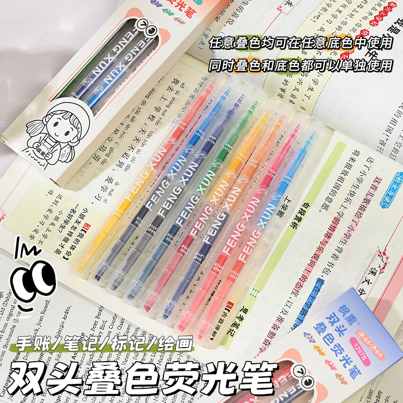 グラデーション保護眼斜頭蛍光ペン学生箱入り手帳カラーペン高颜値画重点記号マーカーペン