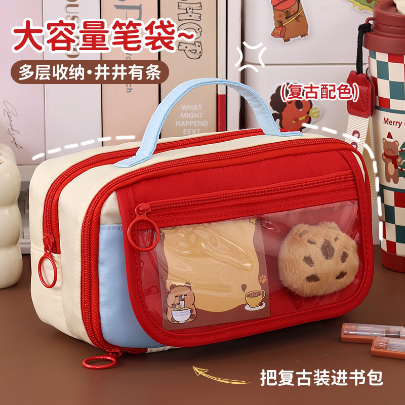 カピバラ大容量ペンケース小学生高颜値可爱い多机能铅笔ケース収纳袋文房具卸