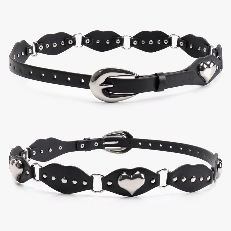 酷配复古美式辣妹铆钉拼接腰带 个性潮流朋克桃心金属装饰皮带女