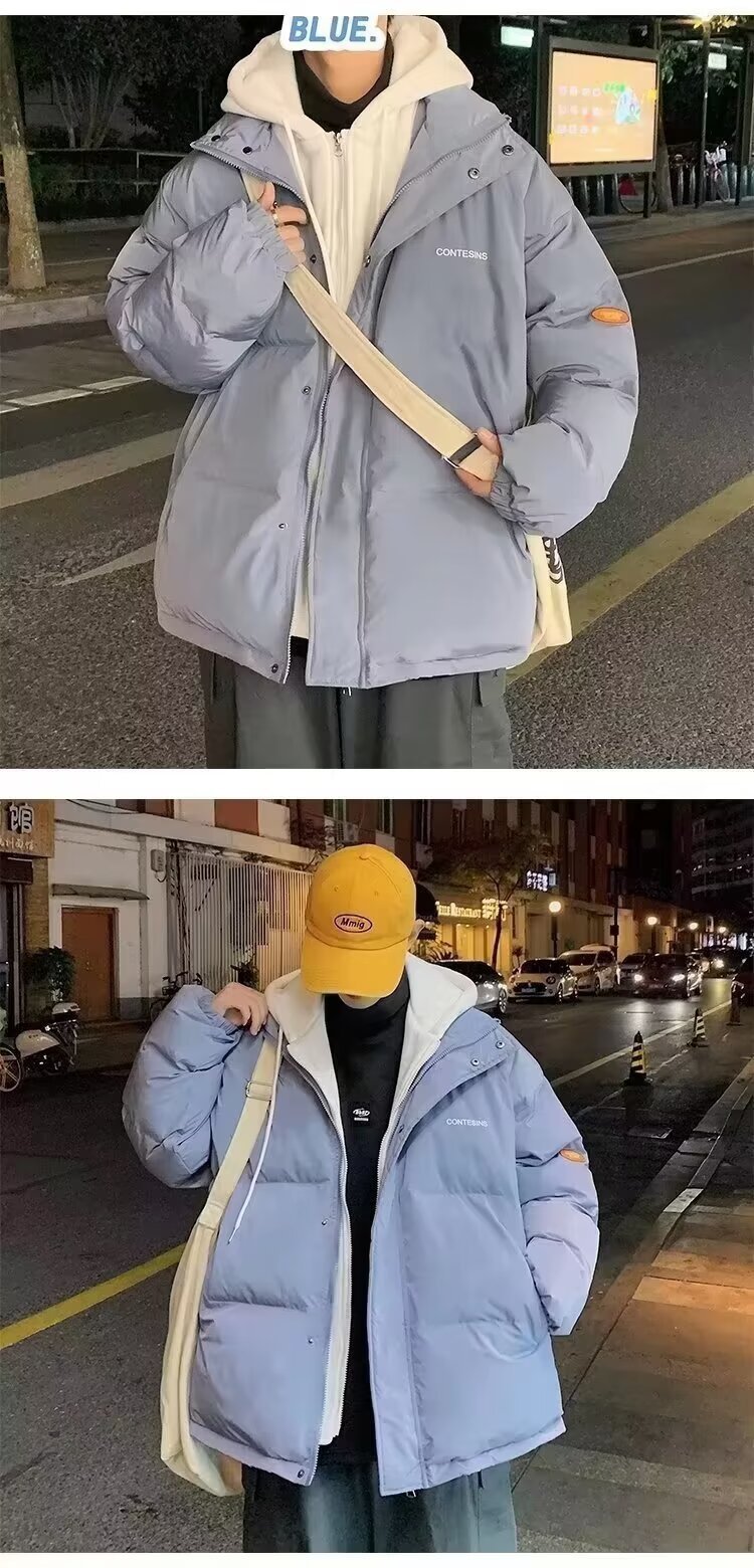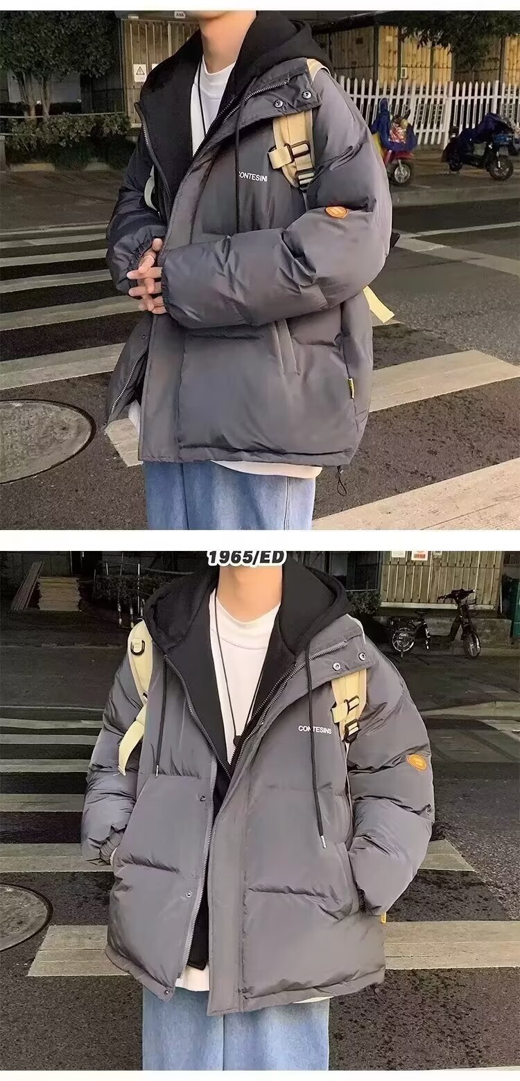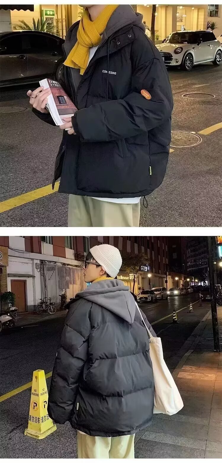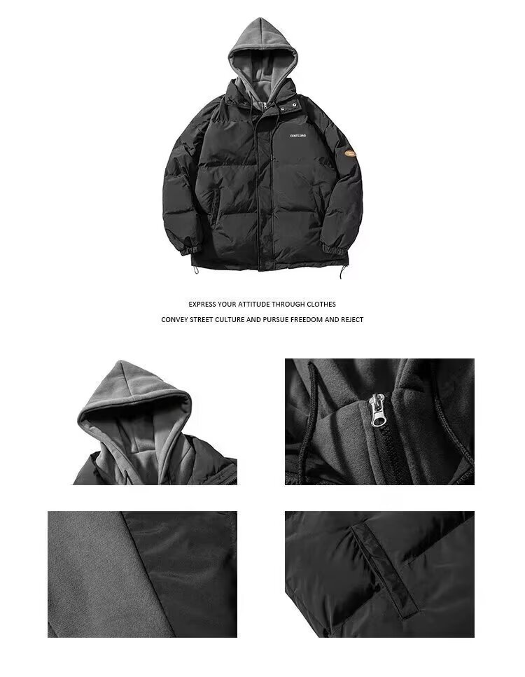 冬の偽の2つの帽子付き綿の服の男性はゆったりとした保温の純色を備えています。
