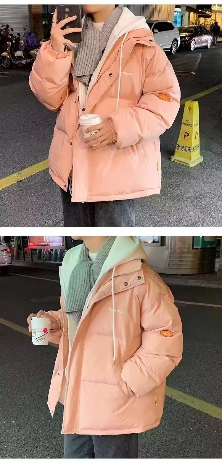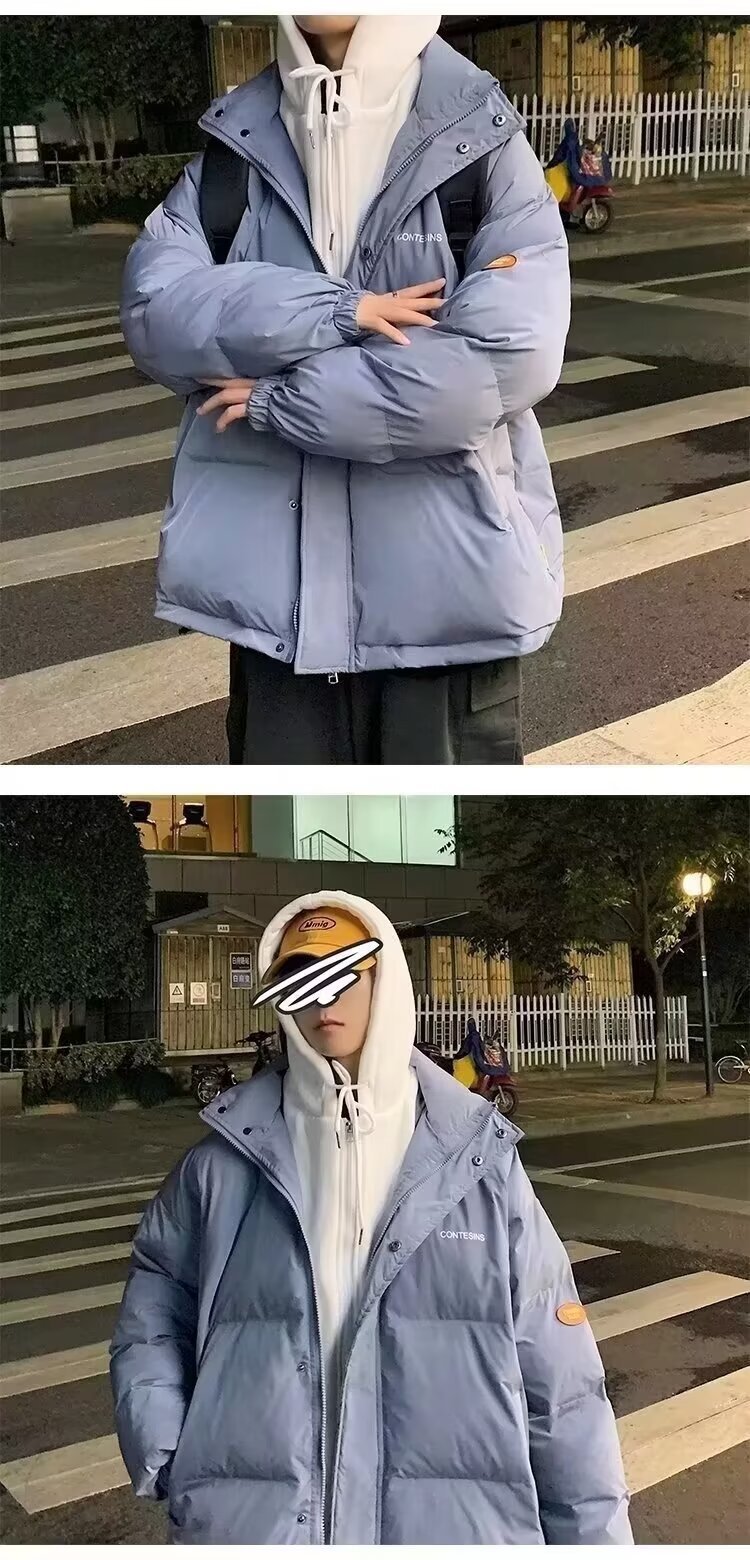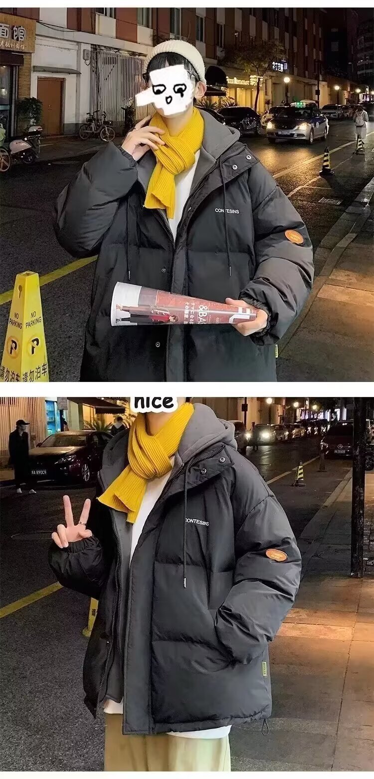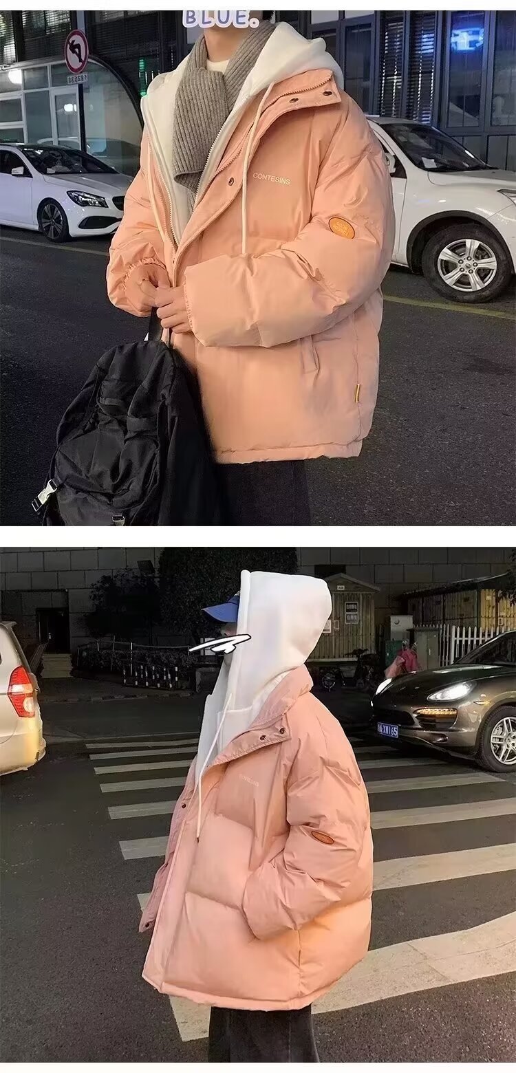 冬の偽の2つの帽子付き綿の服の男性はゆったりとした保温の純色を備えています。