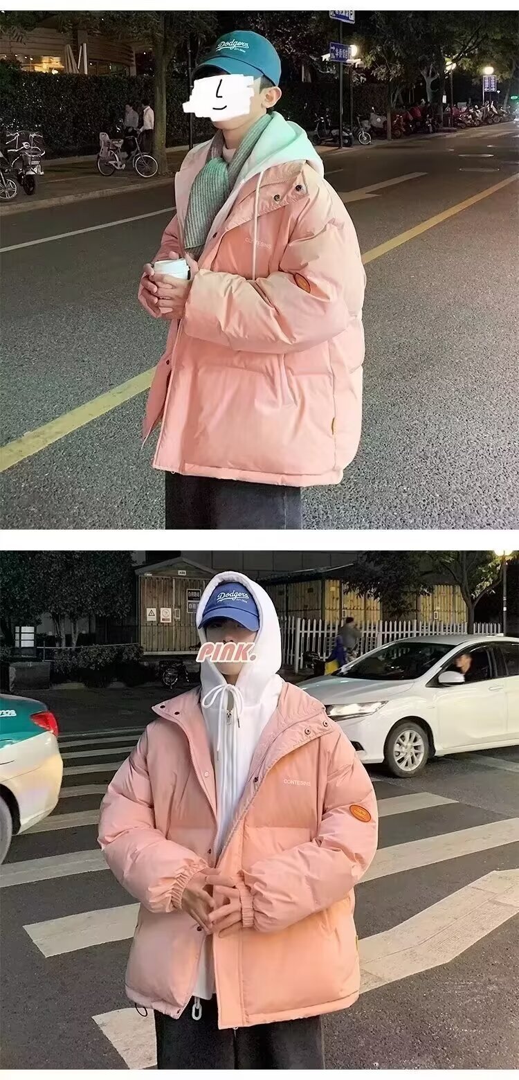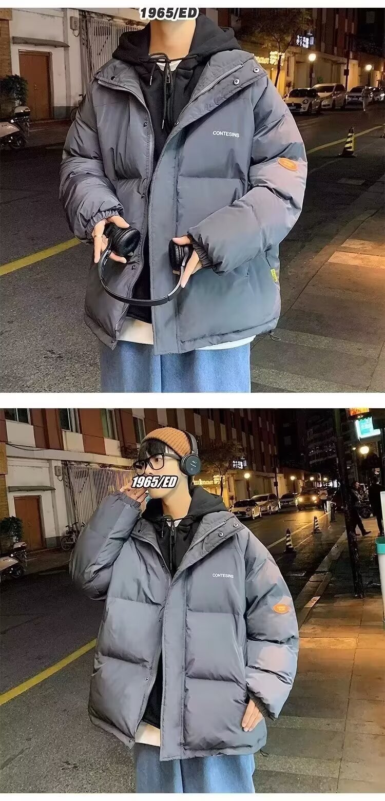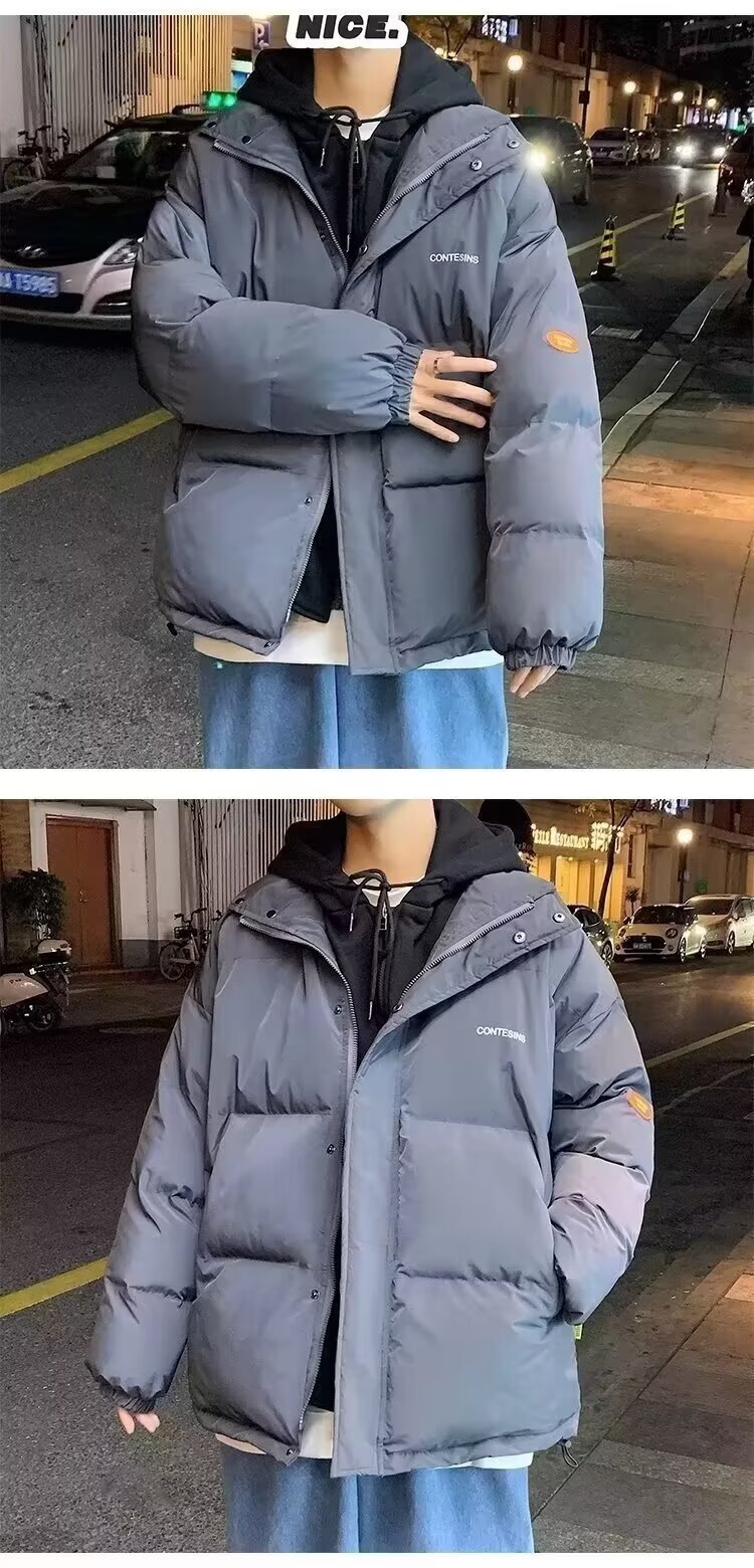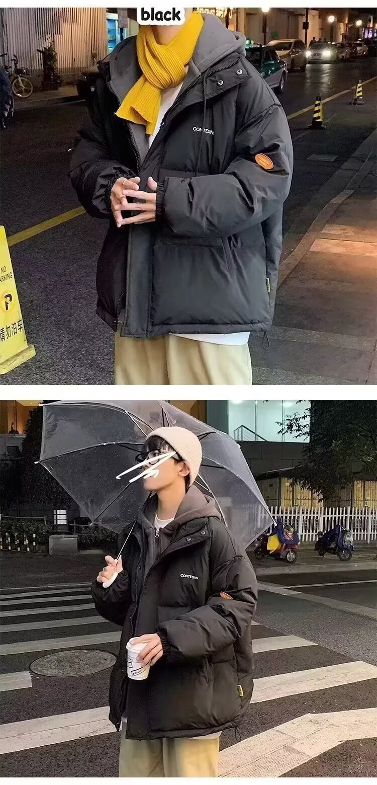 冬の偽の2つの帽子付き綿の服の男性はゆったりとした保温の純色を備えています。