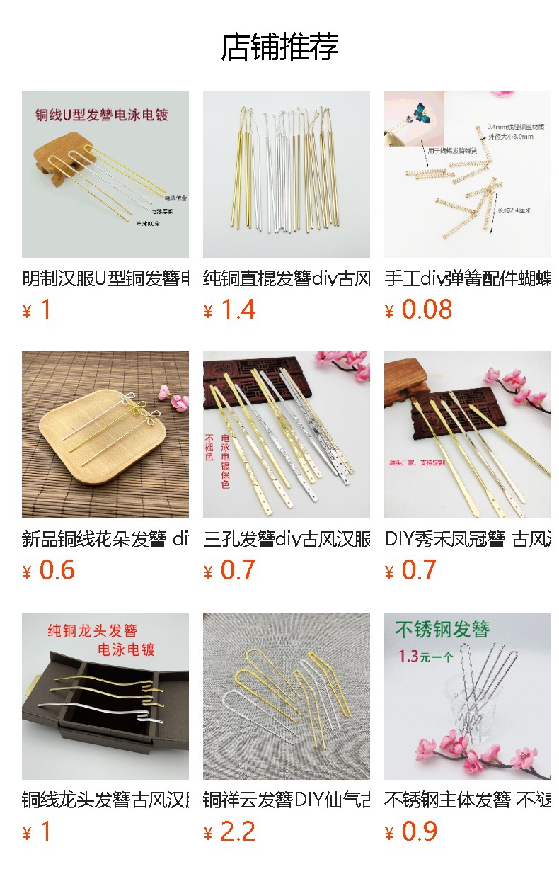 銅線u型ヘアピン電気泳動diyヘアピン明製漢服巻き花子義烏ヘアピン娘古風頭飾り部品