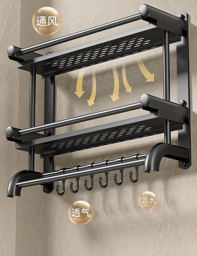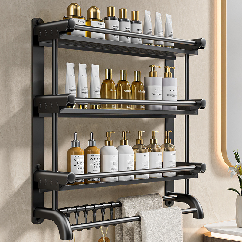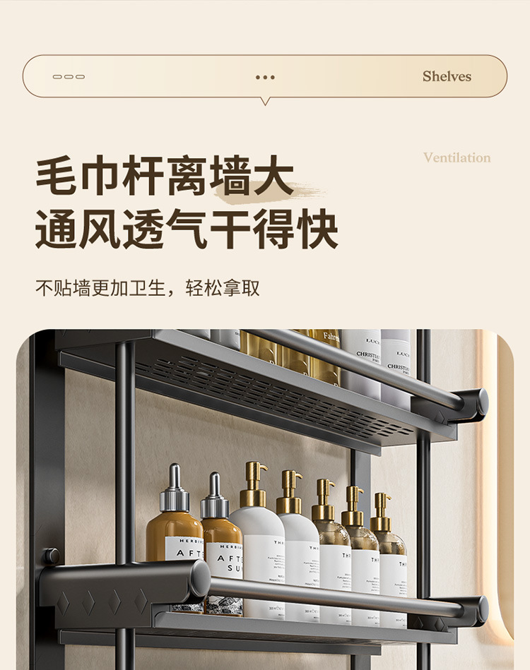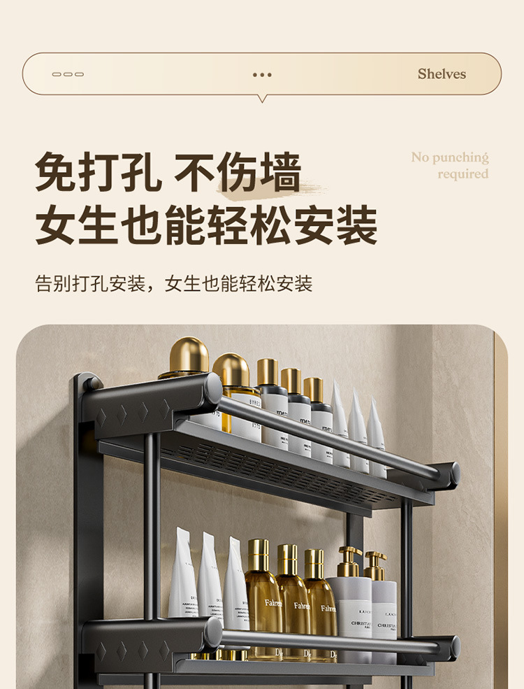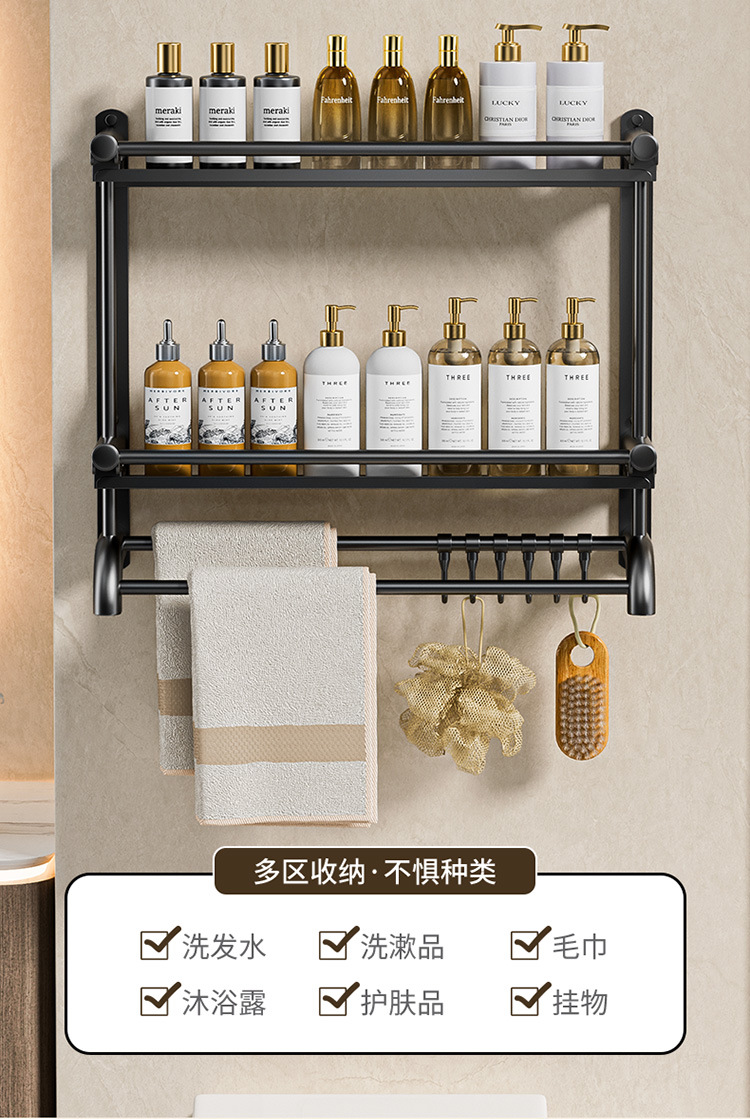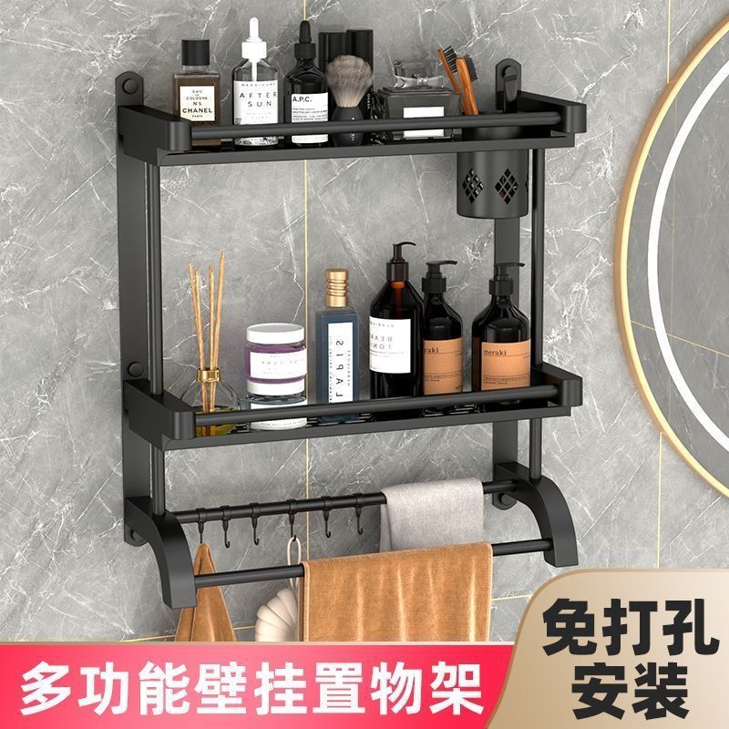 卫生间置物架壁挂式免打孔浴室收纳毛巾架厕所洗手间用品家用大全