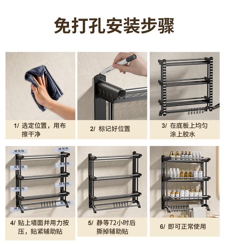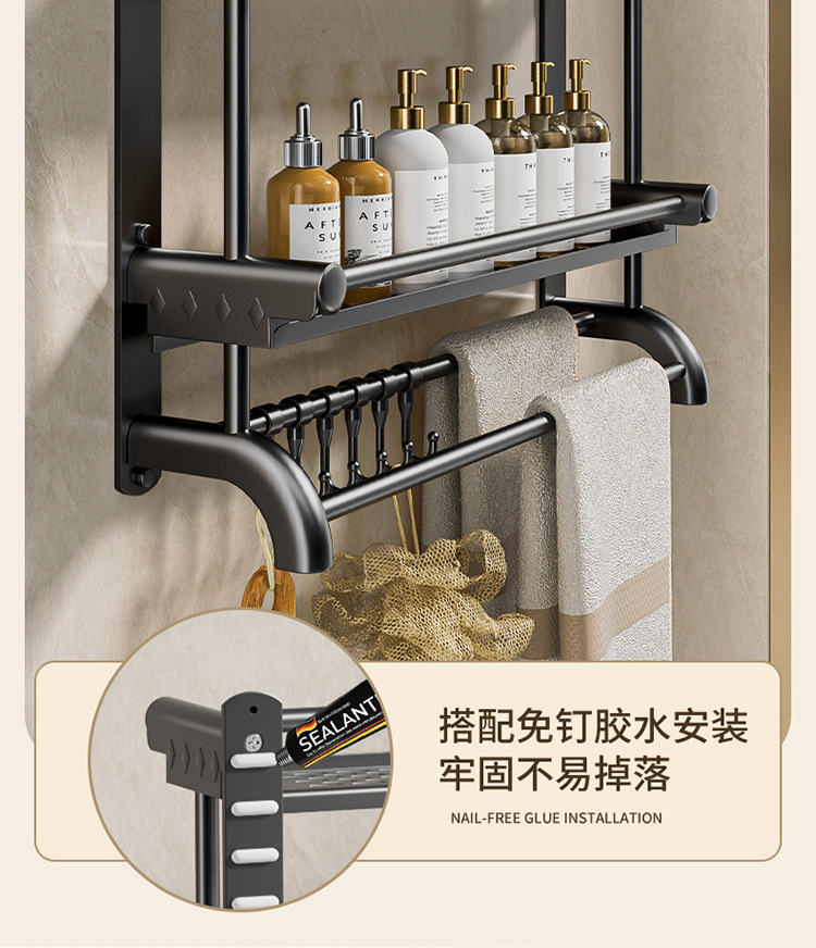 トイレラック浴室タオルラック穴なしトイレ入浴剤壁掛けバスタオルラック化粧品収納