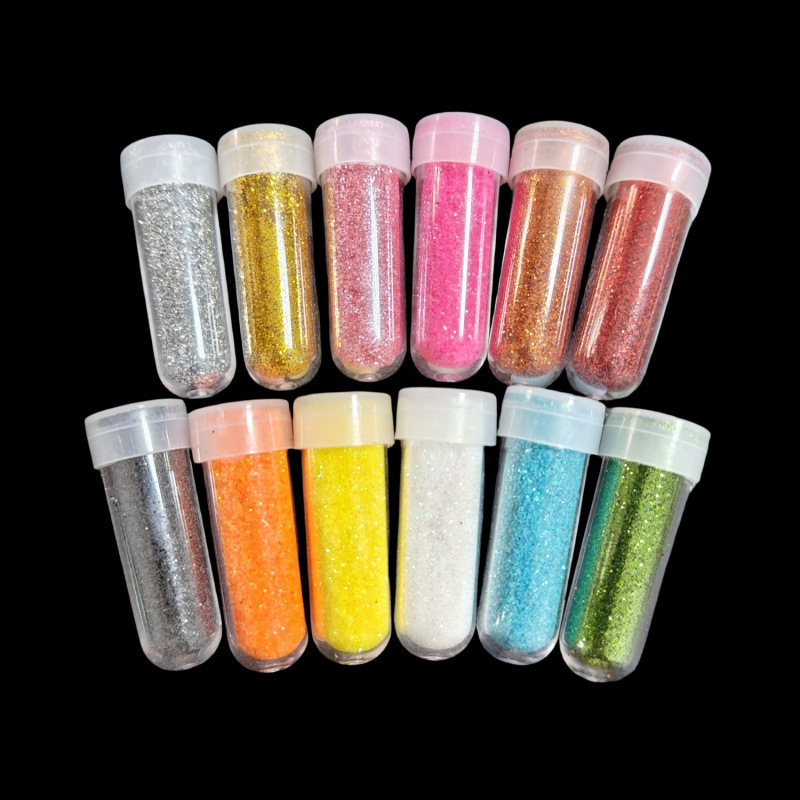 新しい熱売11本セットの金葱粉閃粉瓶入りDIYスライム手画材料24色が自由に合う