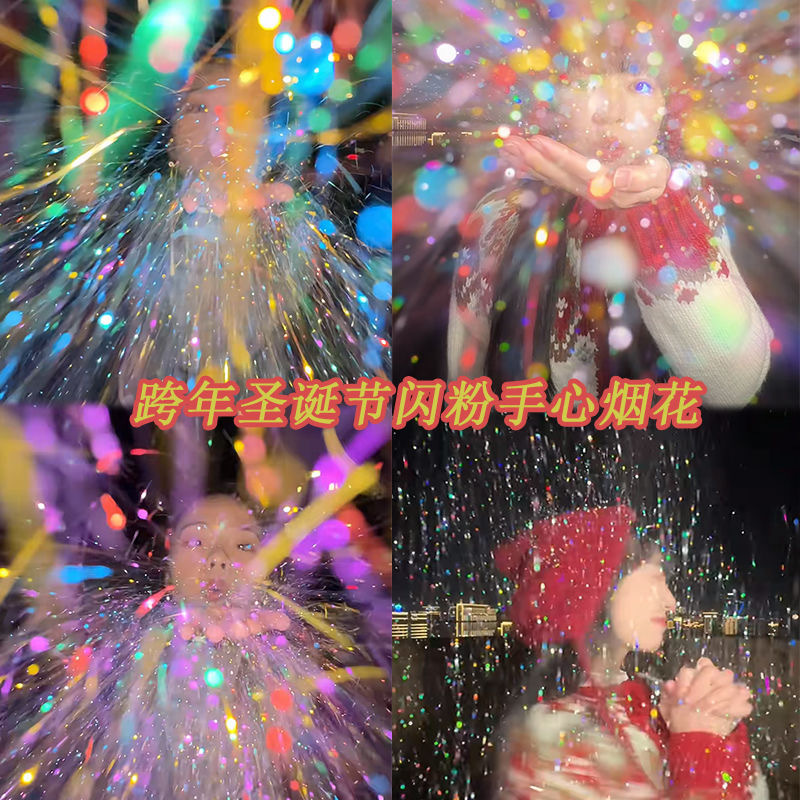 年越しクリスマスの手のひら花火の雰囲気感金葱粉閃粉ネット赤は雪景色花火閃粉の写真撮影道具をまねる