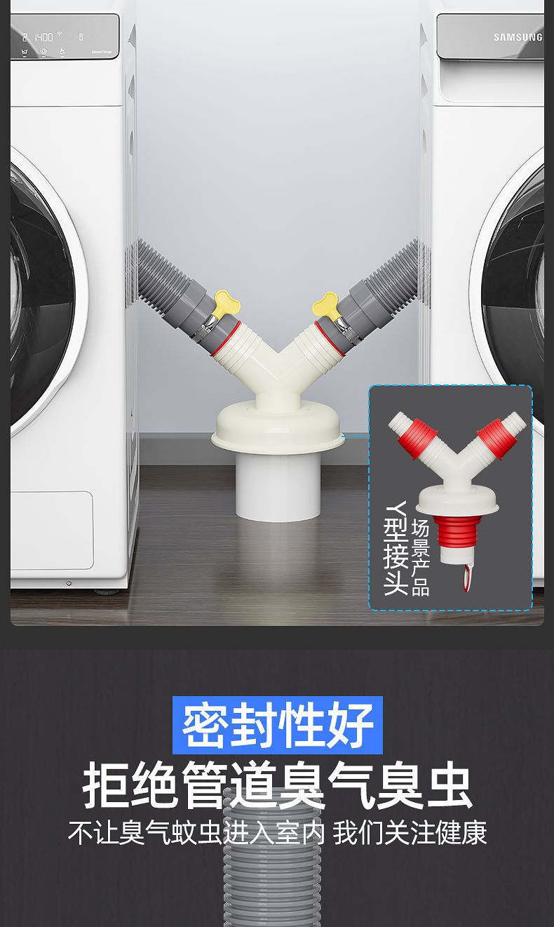 洗濯機下水管防漏分水器y型三方排水管厨房通用型防漏継手二合一