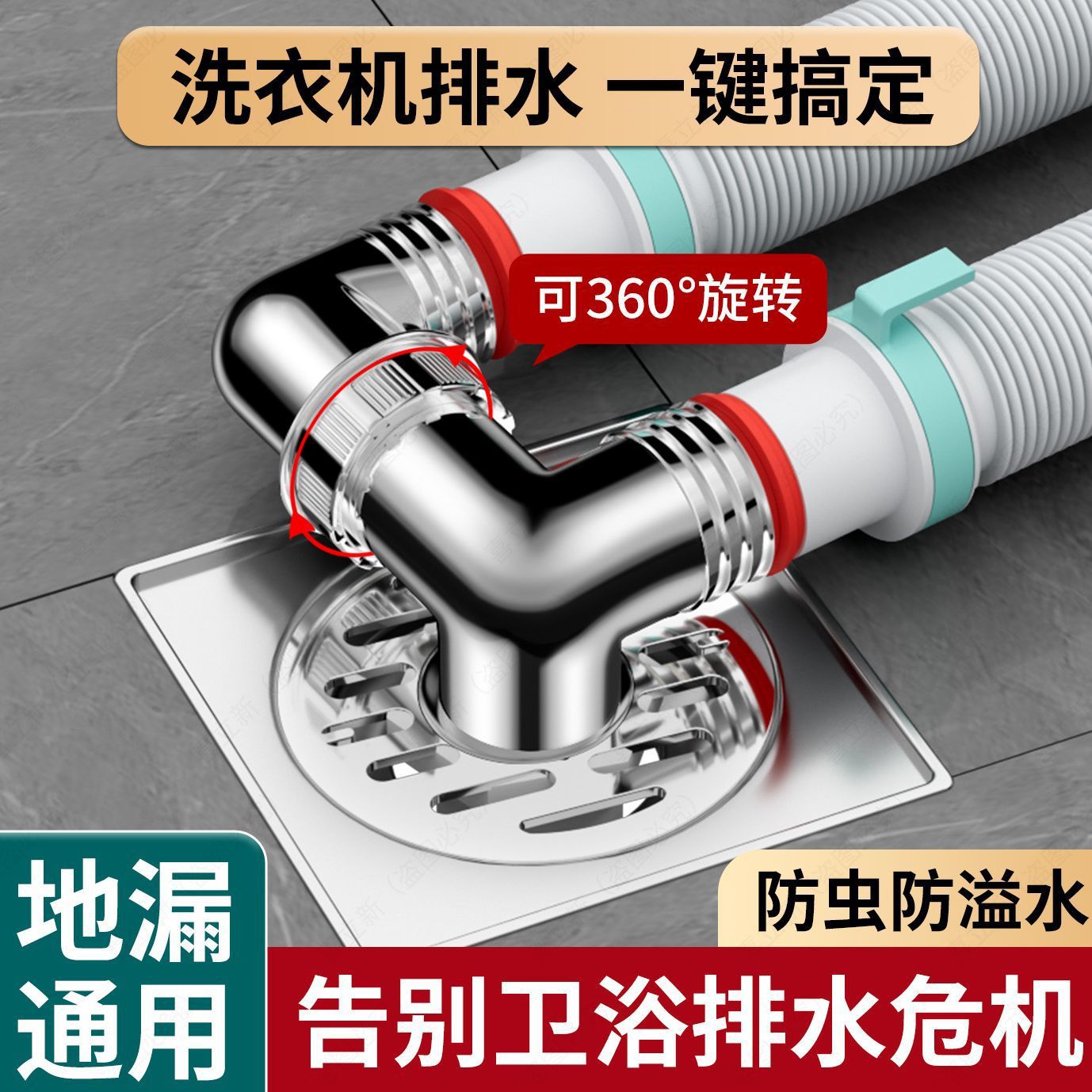 阳台洗衣机下水管地漏接头专用二合一排水管三头通防臭防溢水加长