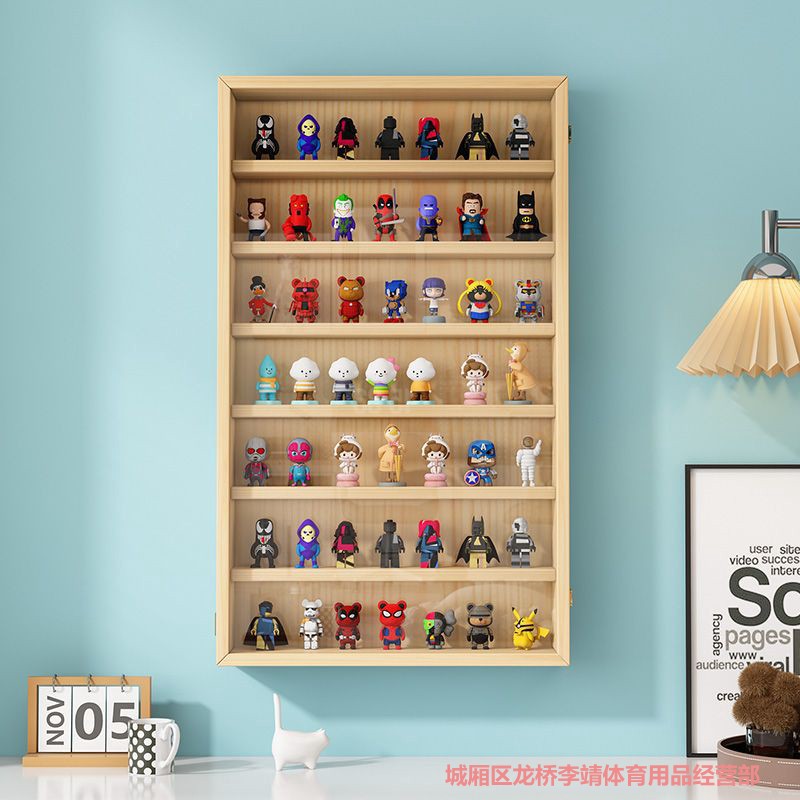 アクリルブラインド箱収納展示棚手作り人形実木収納棚展示箱防塵棚壁