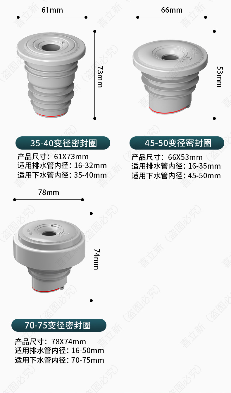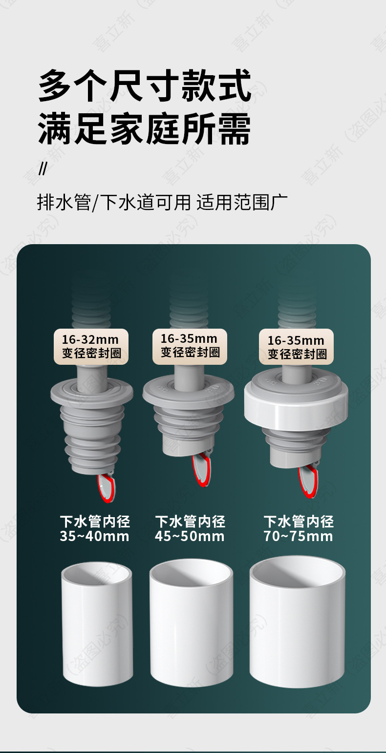 厨房下水管密封栓洗濯機排水配管5075封口蓋シリカゲルリング臭防止栓口神器