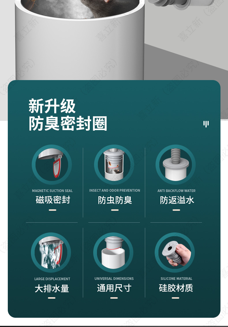 下水管防臭シールリング臭防止神器洗濯機下水道口栓キッチン排水管シリコン栓