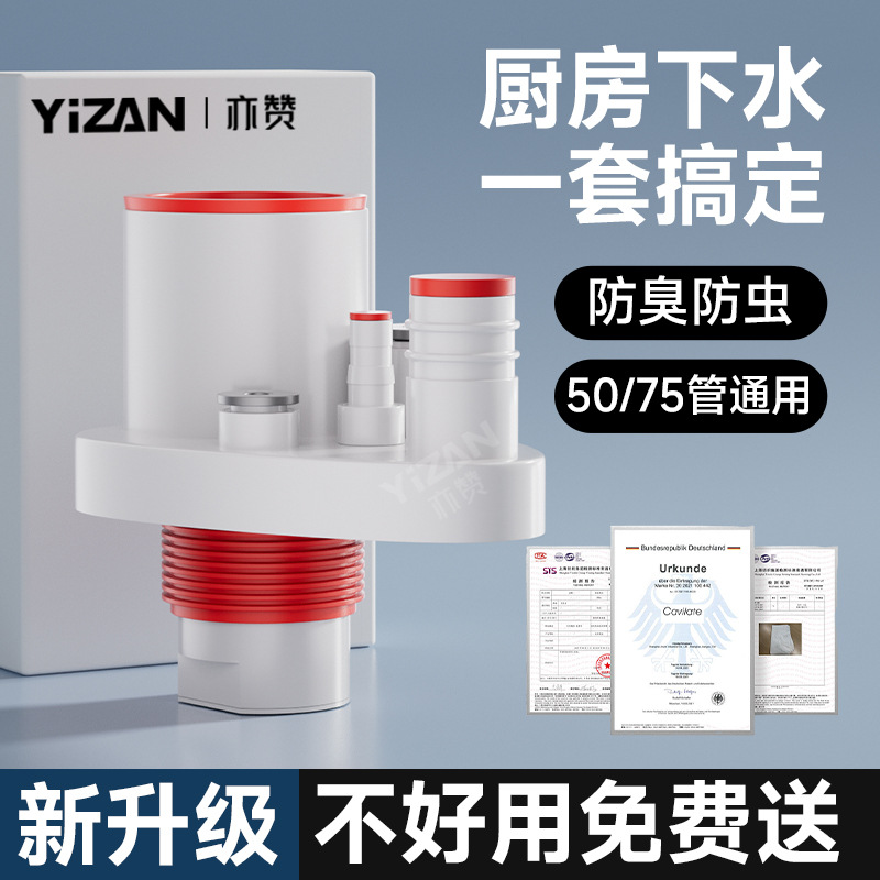 厨房下水管三通洗菜盆排水器多功能净水器五通集成分水器防臭神器