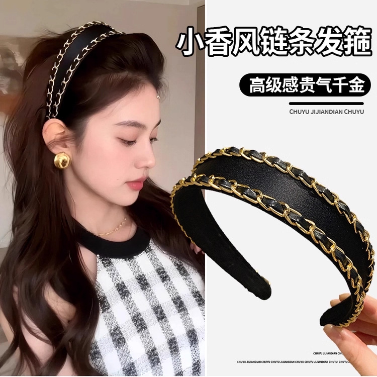 法式经典高级感双链宽边发箍女款2025新款轻奢高颅顶头箍发卡头饰