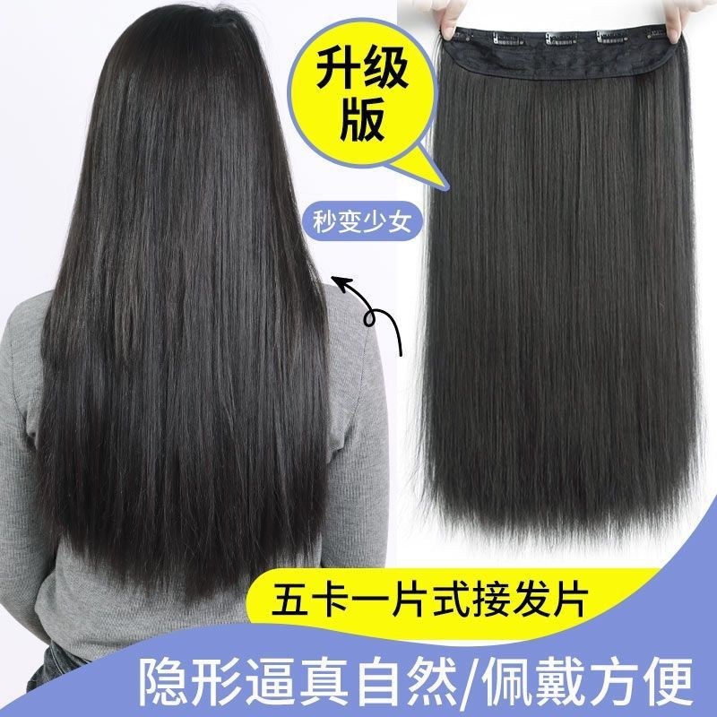 ロングヘアーの女性用ウィッグピース、5つのカード、ワンピースの目に見えない跡のない人工毛、髪のボリュームを増やす、ふわふわのストレートヘアエクステンションパッチ