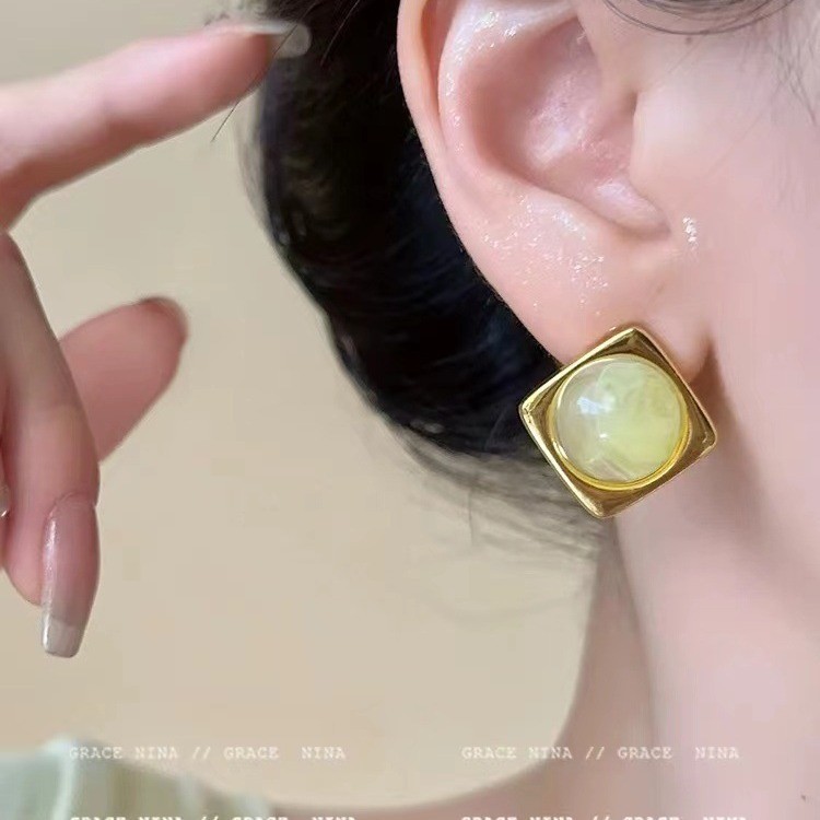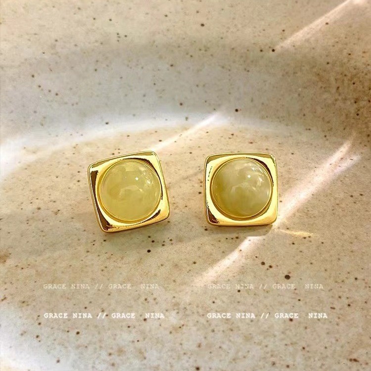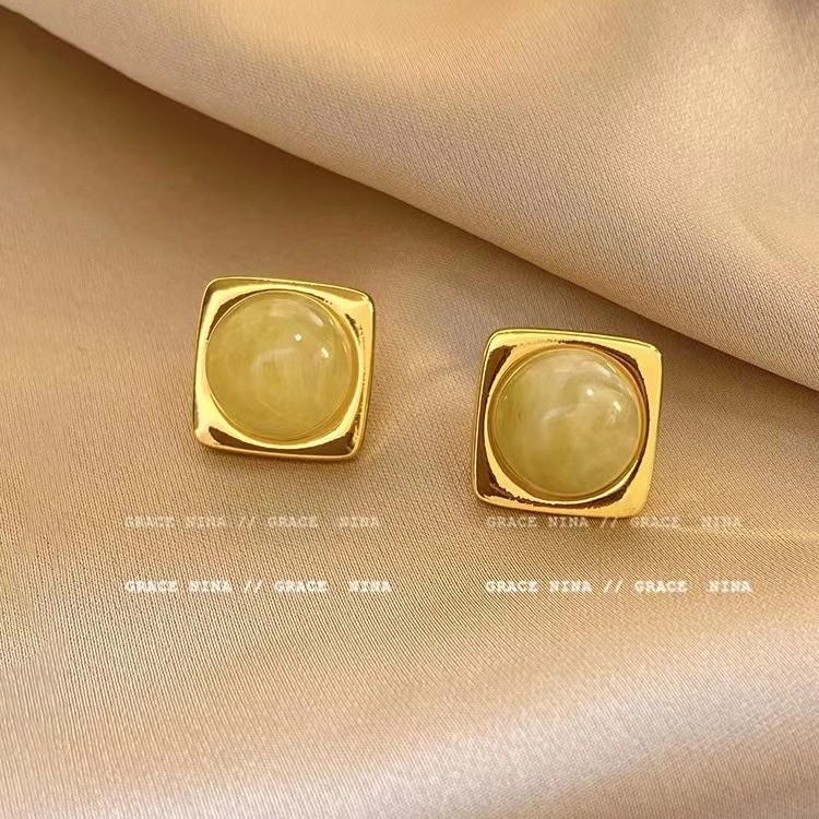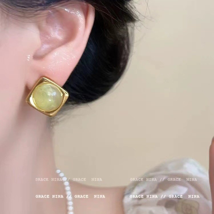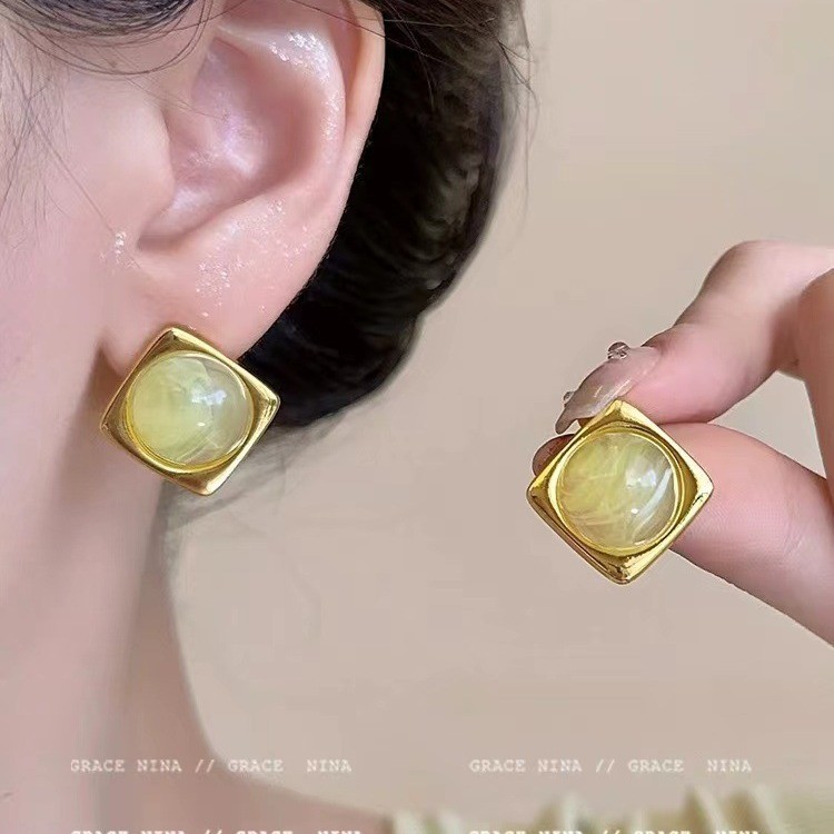 フランスのレトロな幾何学の四角のピアスの女性の2024年の新型の大衆の清新でシンプルなファッションの百合のイヤリングのアクセサリー