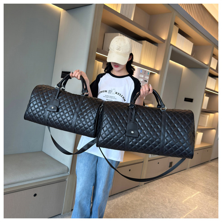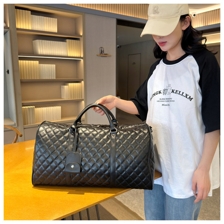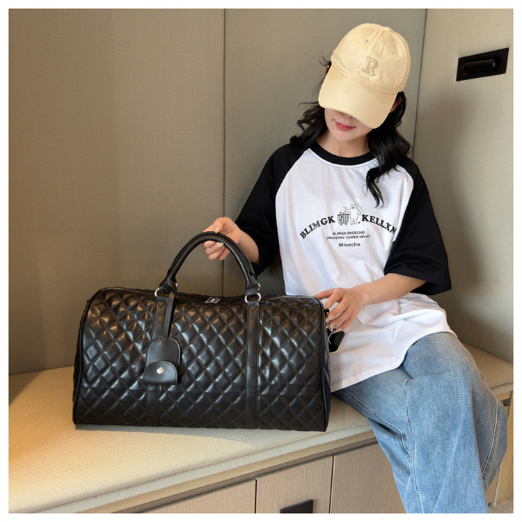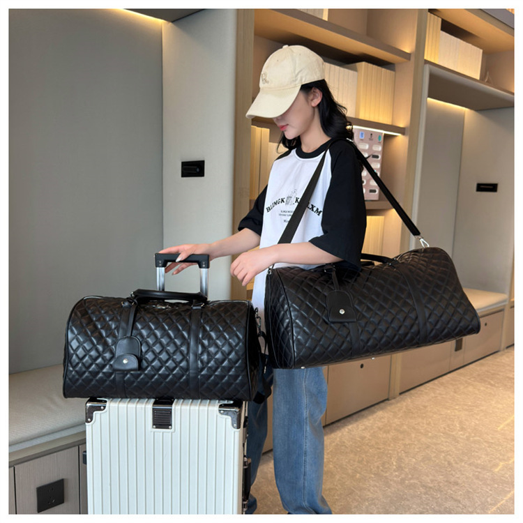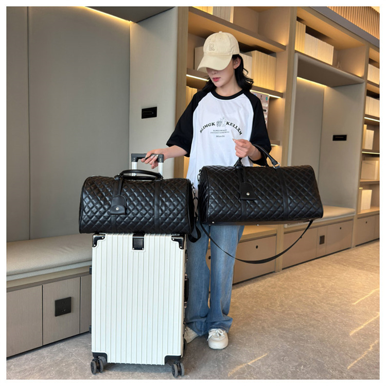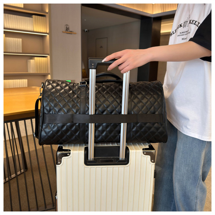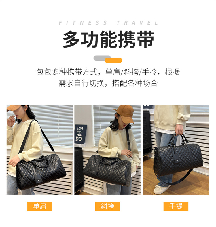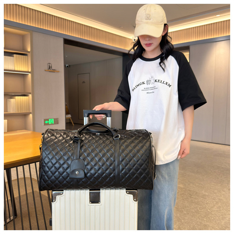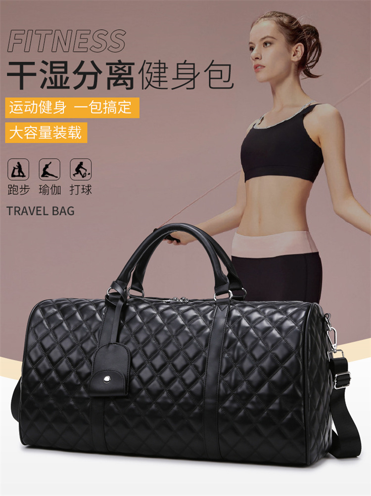 新型クロスボーダー小香風菱格搭乗バッグ旅行手持ち乾湿分離セットタイロッド高颜値荷物バッグ