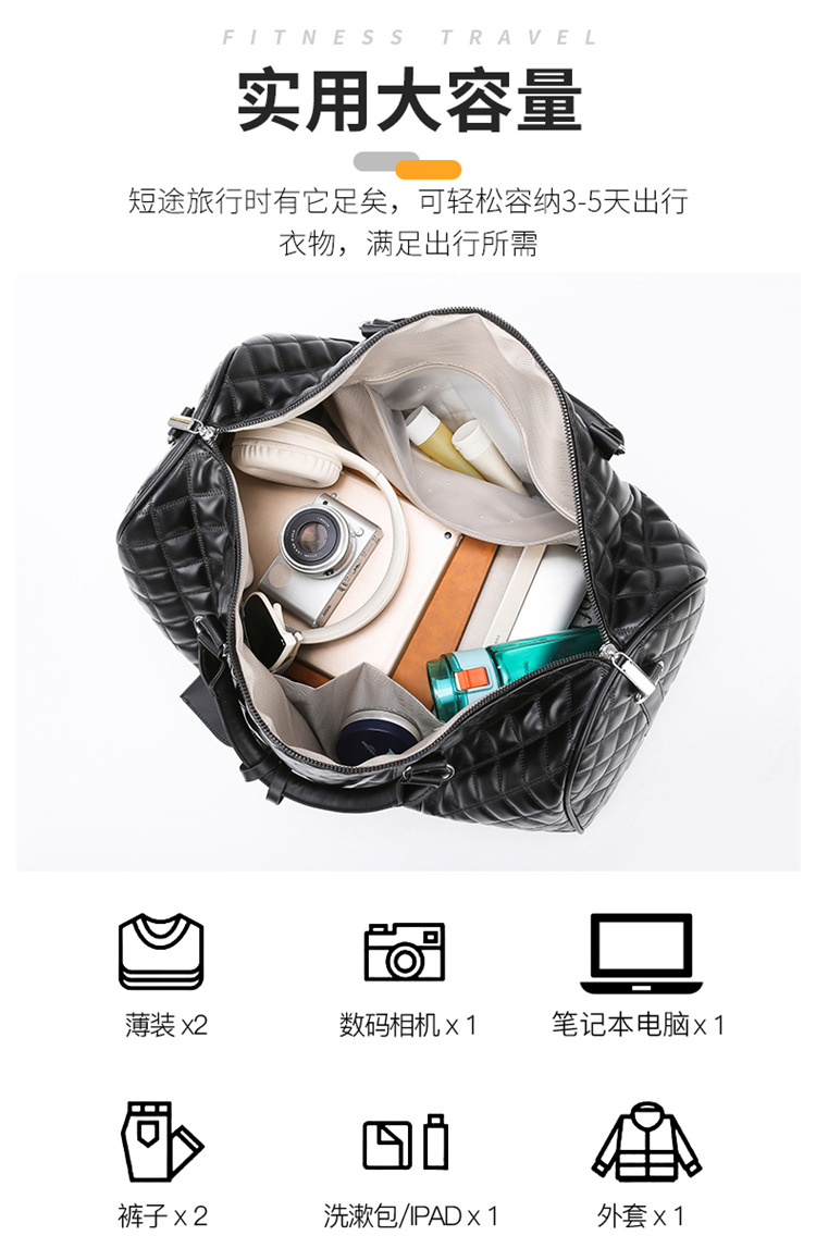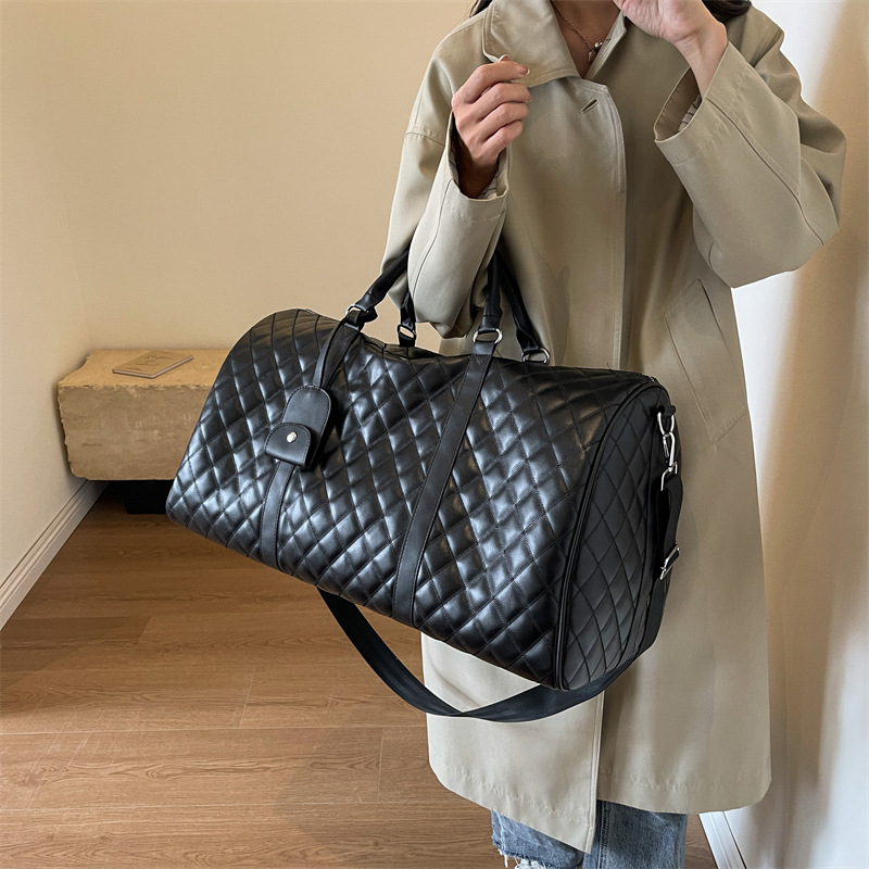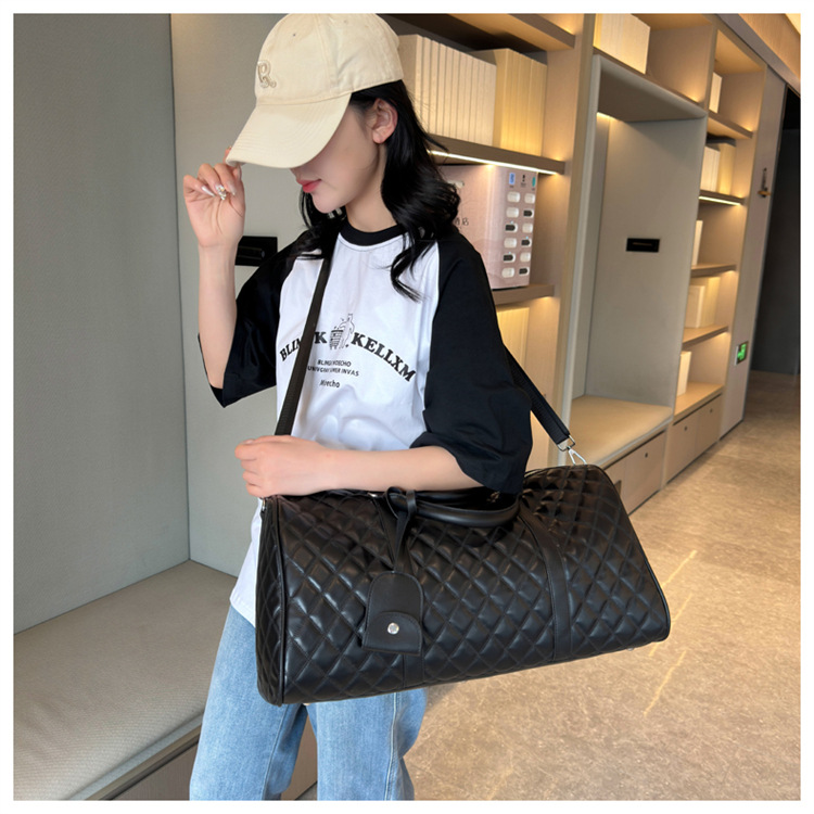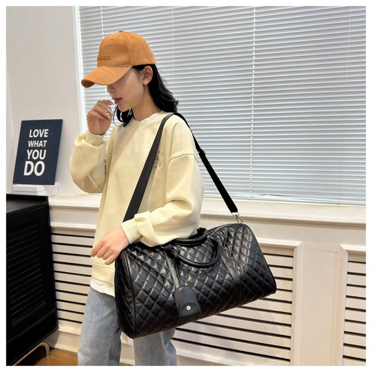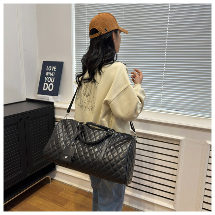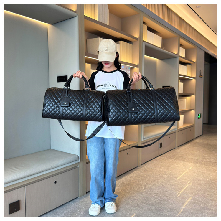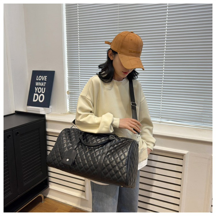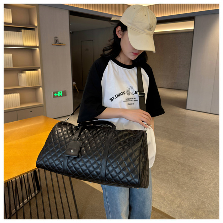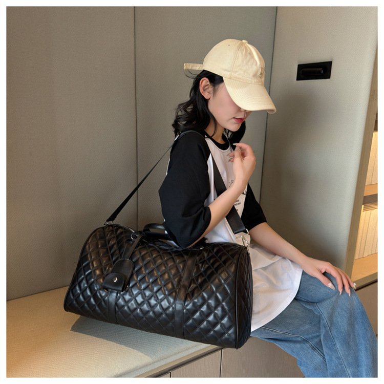新型クロスボーダー小香風菱格搭乗バッグ旅行手持ち乾湿分離セットタイロッド高颜値荷物バッグ