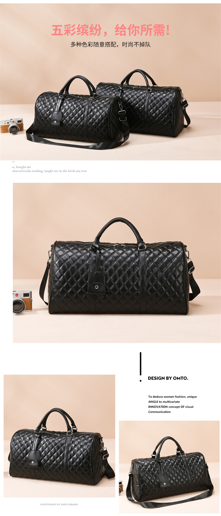 新款多彩短途旅行袋多巴胺色大容量单肩行李袋出差通勤逛街手提包