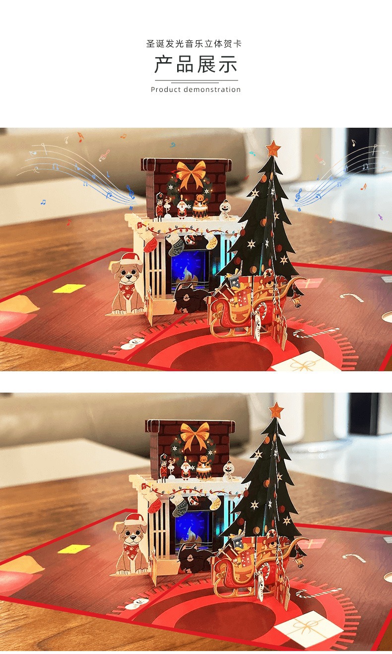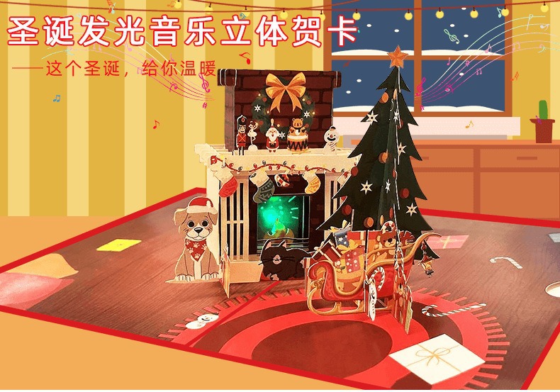 メーカーは創意ポップアップ式クリスマス音楽照明3d立体グリーティングカードを提供しています。