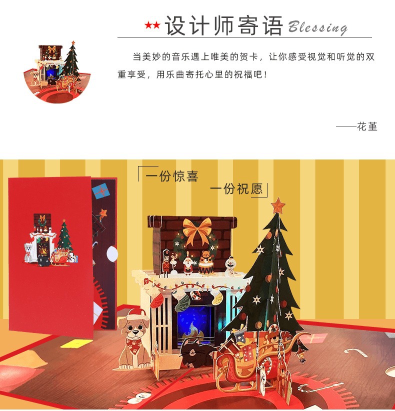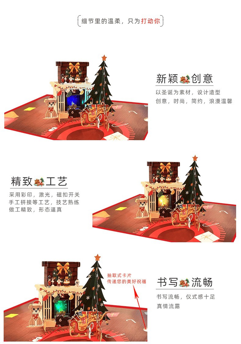 新しいクリスマス立体創意グリーティングカード平安夜クリスマス祝福メッセージ3d立体小カード