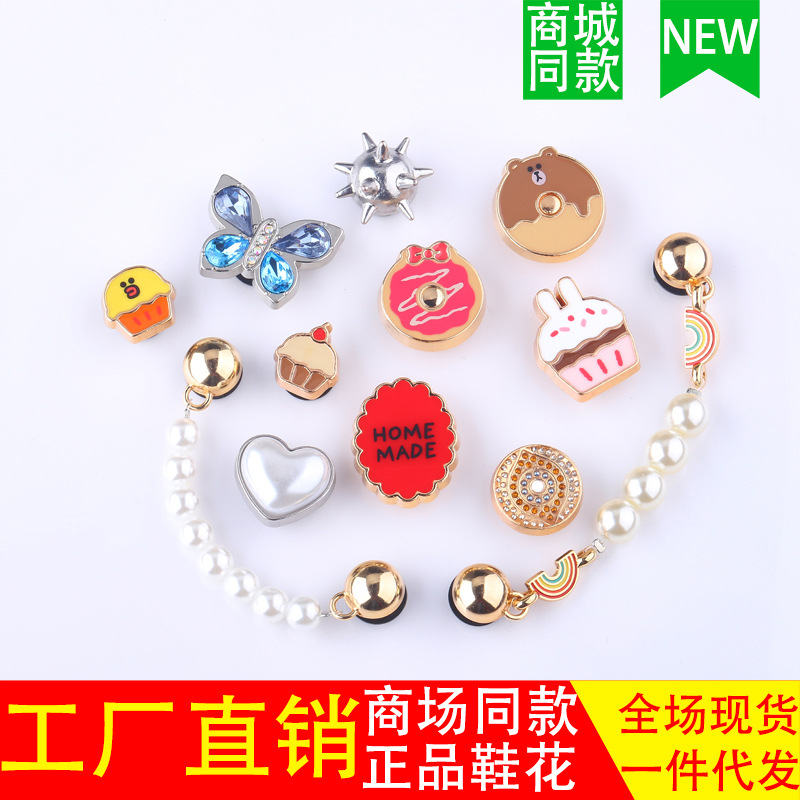 国境を越えた電気商洞靴花デパートの同じ靴にDIY装飾質感金属かわいいチェーン装飾ボタンがついている
