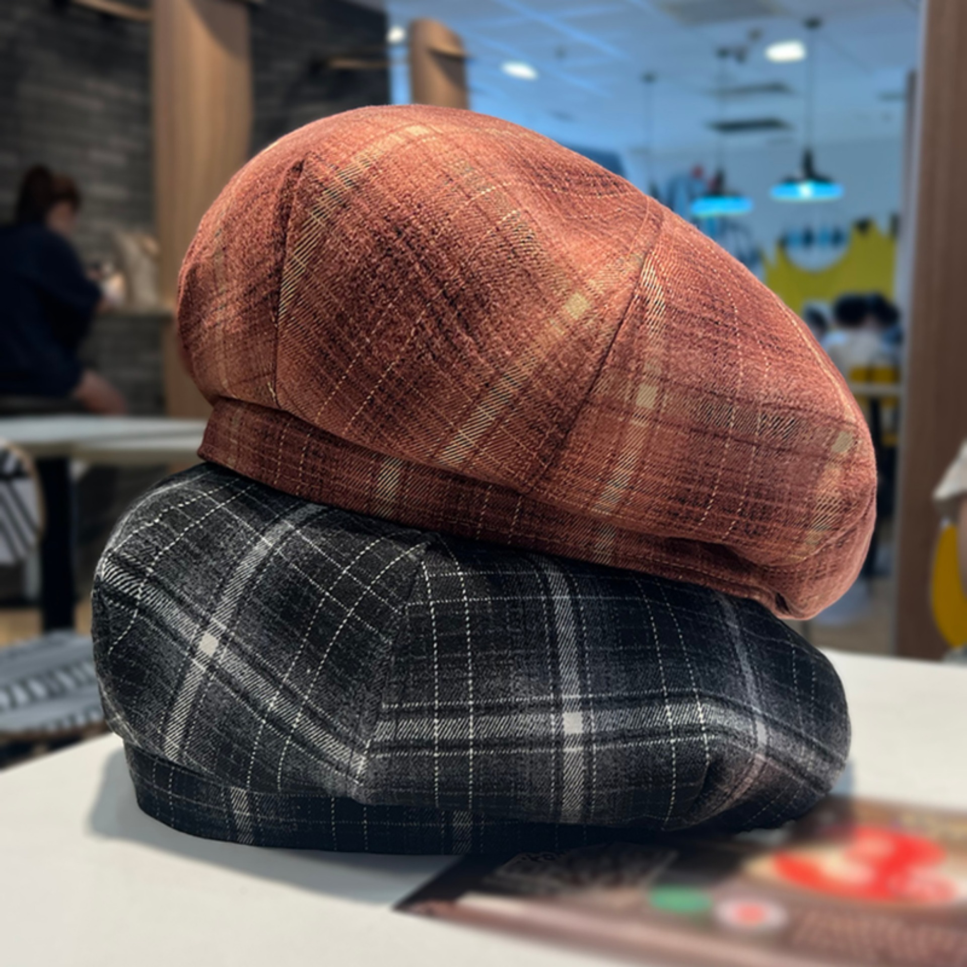 おしゃれな秋冬の韓国版の格子縞のレトロな毛は、八角帽子と秋冬の雰囲気感をつなぎ合わせてベレー帽を合わせます。