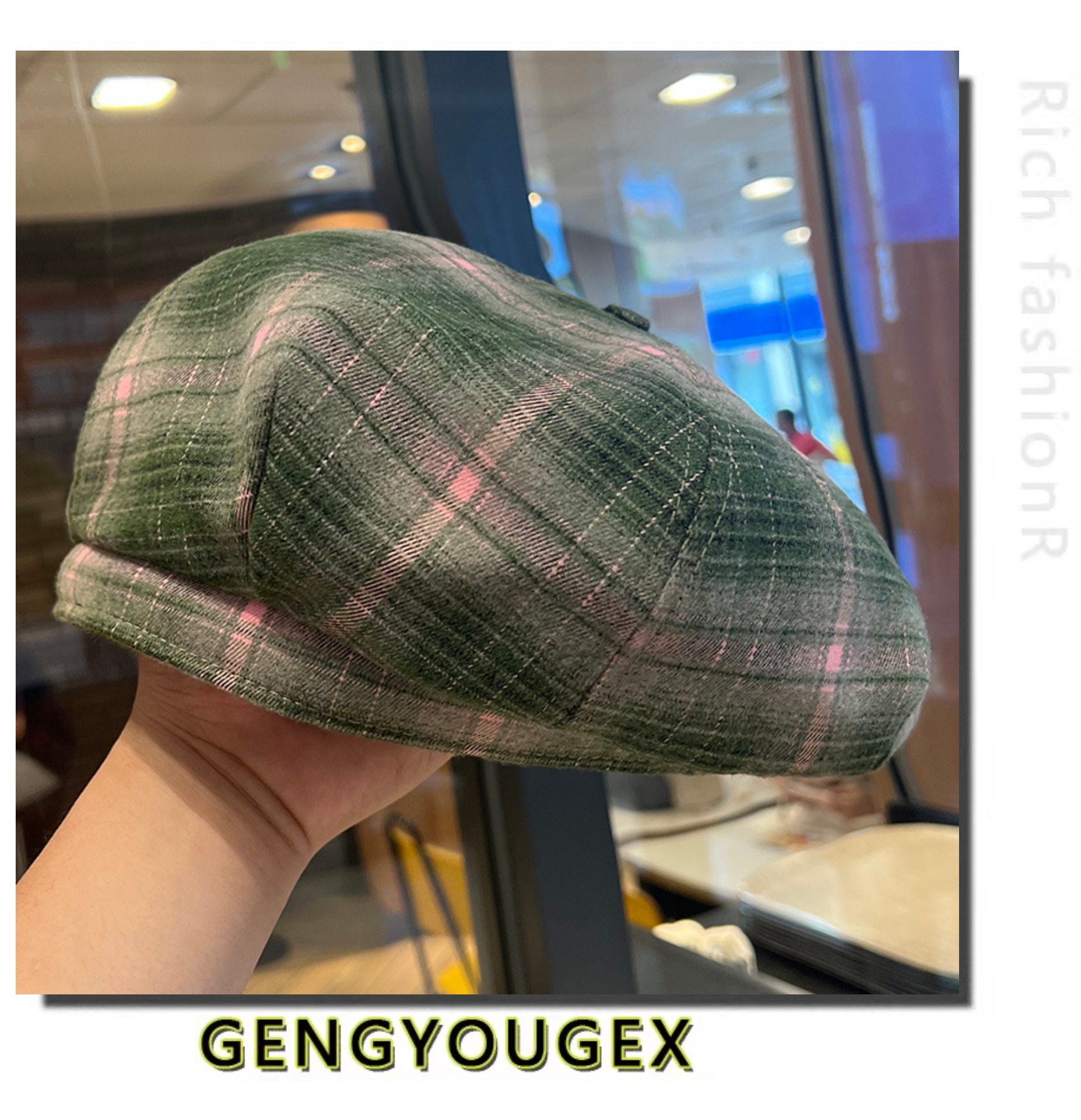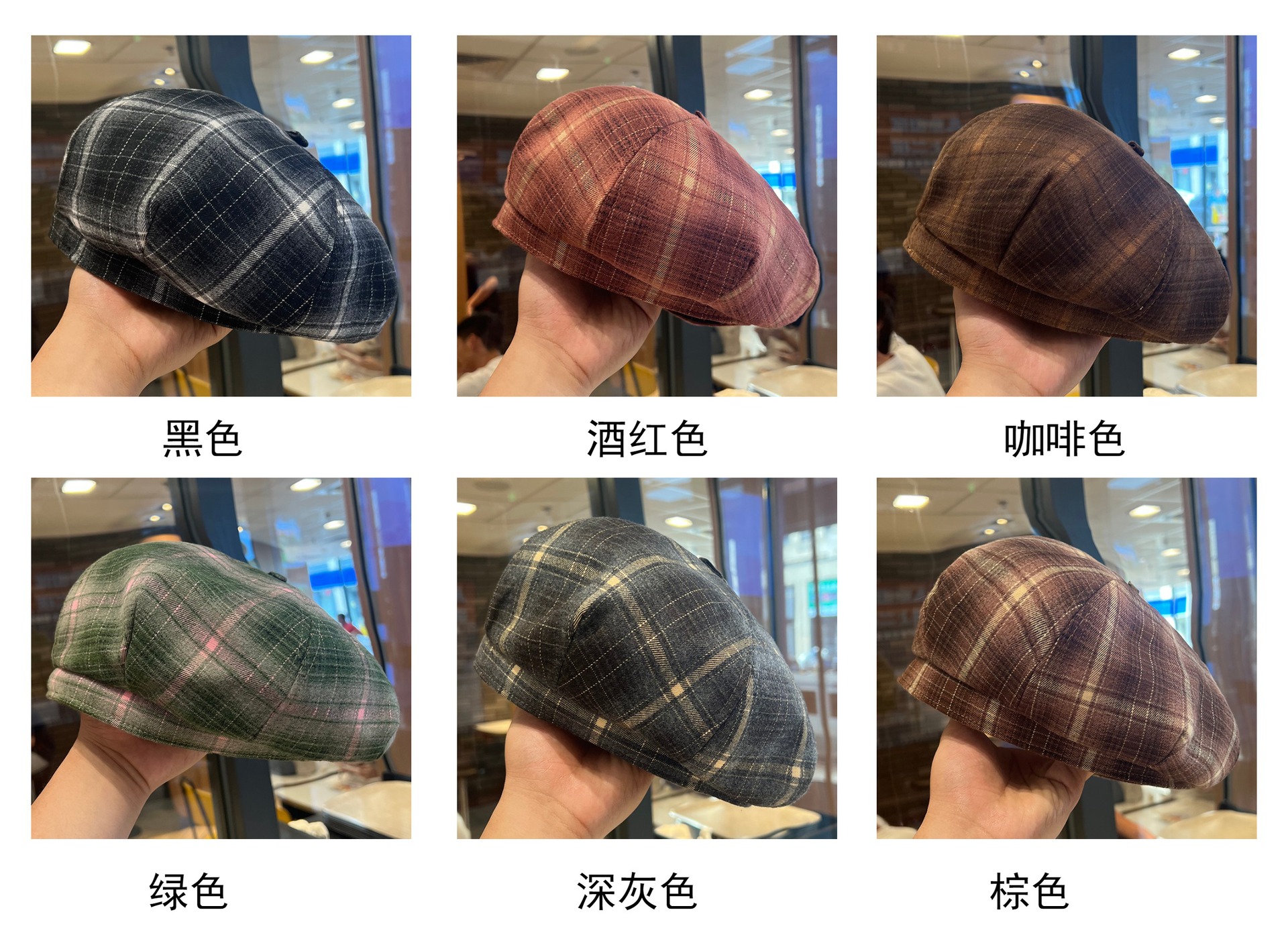 英伦风复古格纹贝雷帽女秋冬显脸小日系百搭画家帽潮报童八角帽子