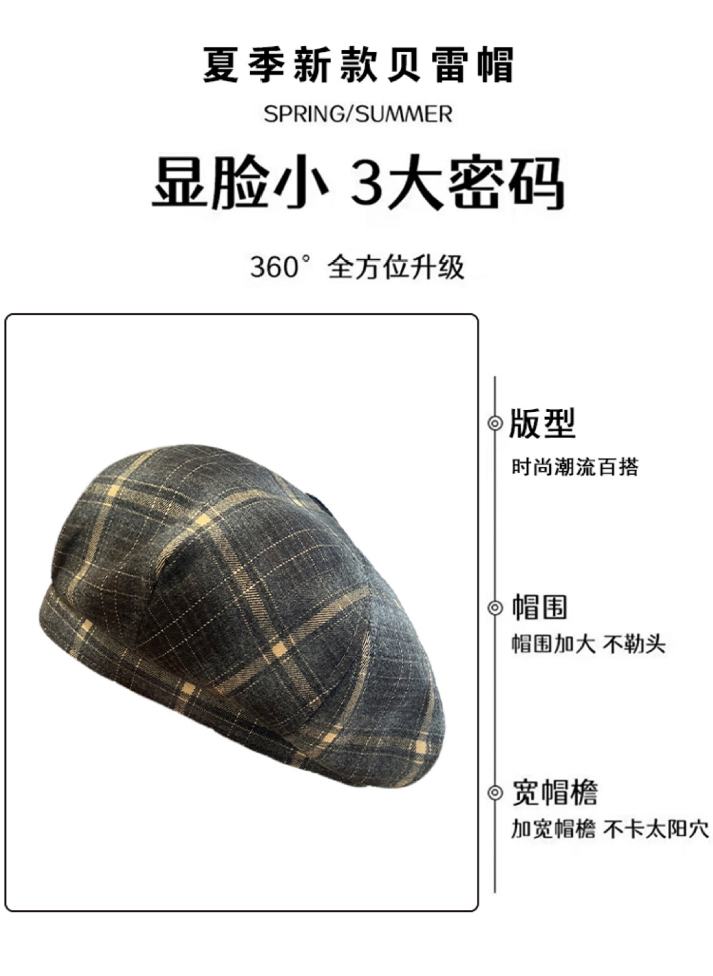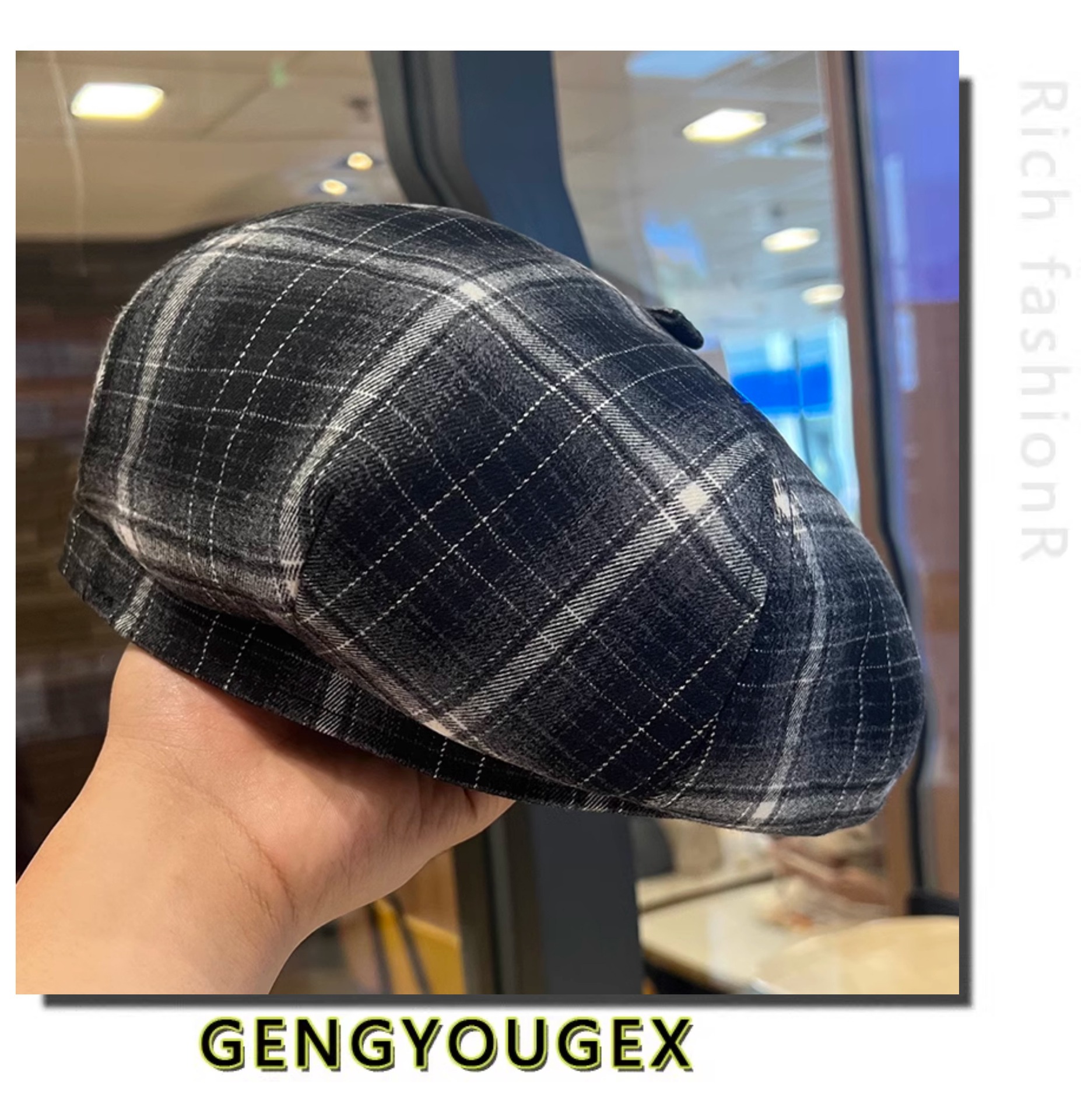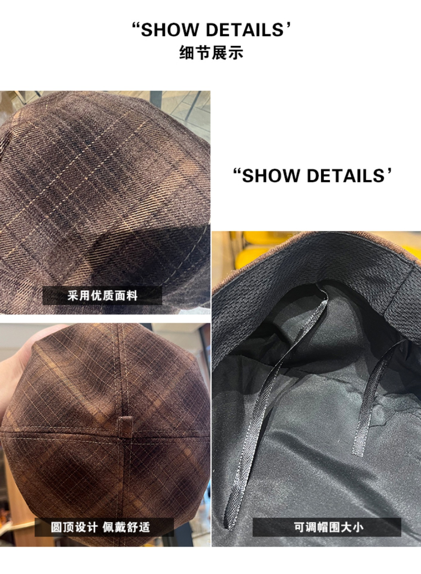时尚韩国2025年新款小众格子毛边画家帽女大头围显脸小春秋贝雷帽