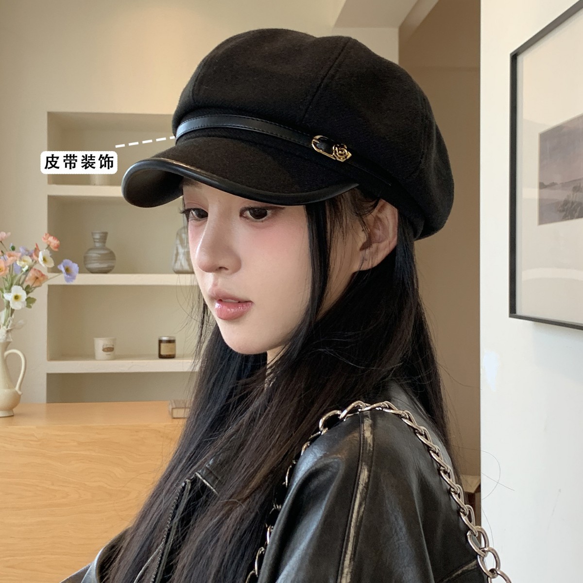 2025秋季新款八角帽子女百搭画家帽英伦风复古宽檐显脸小报童帽潮