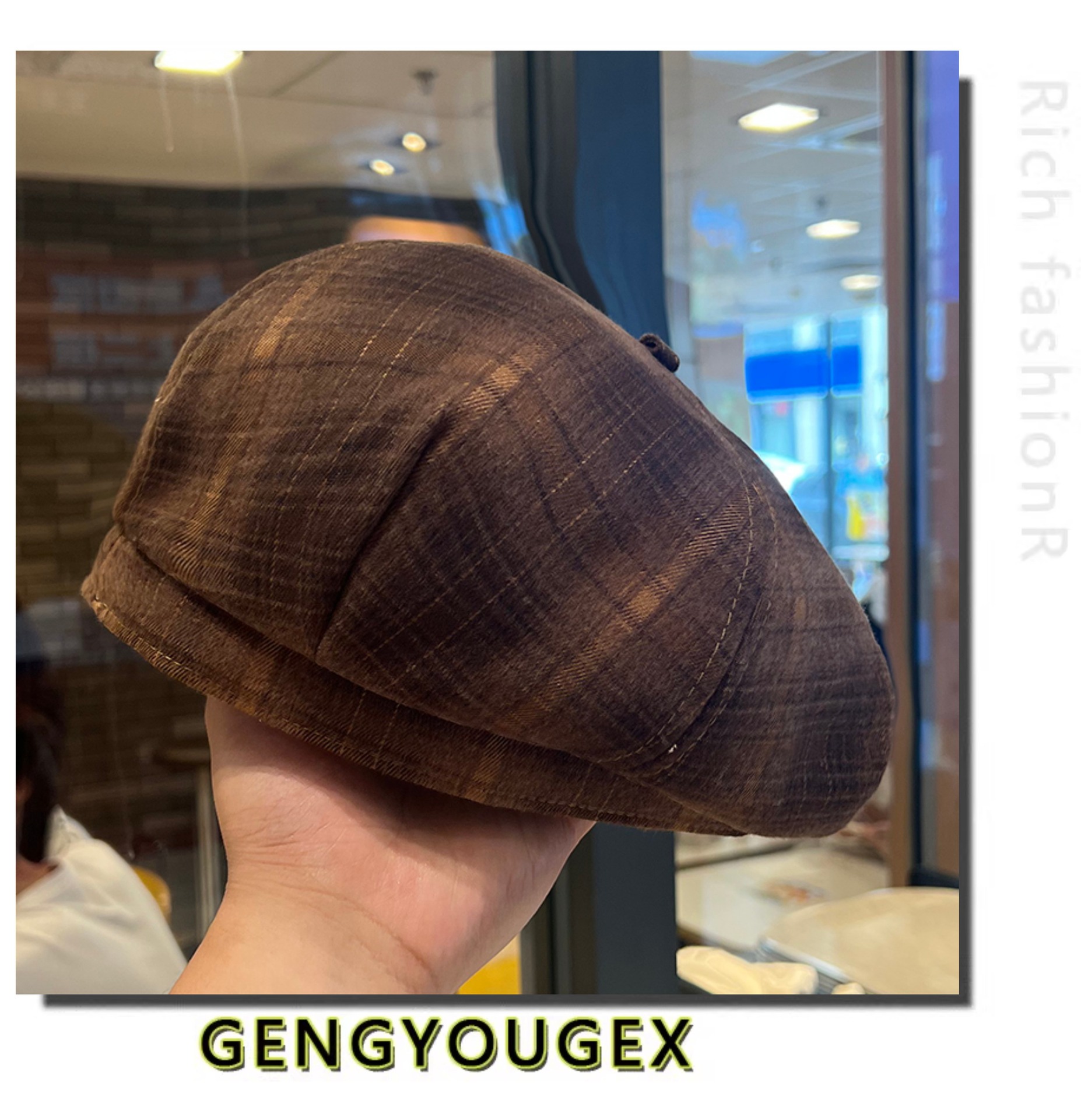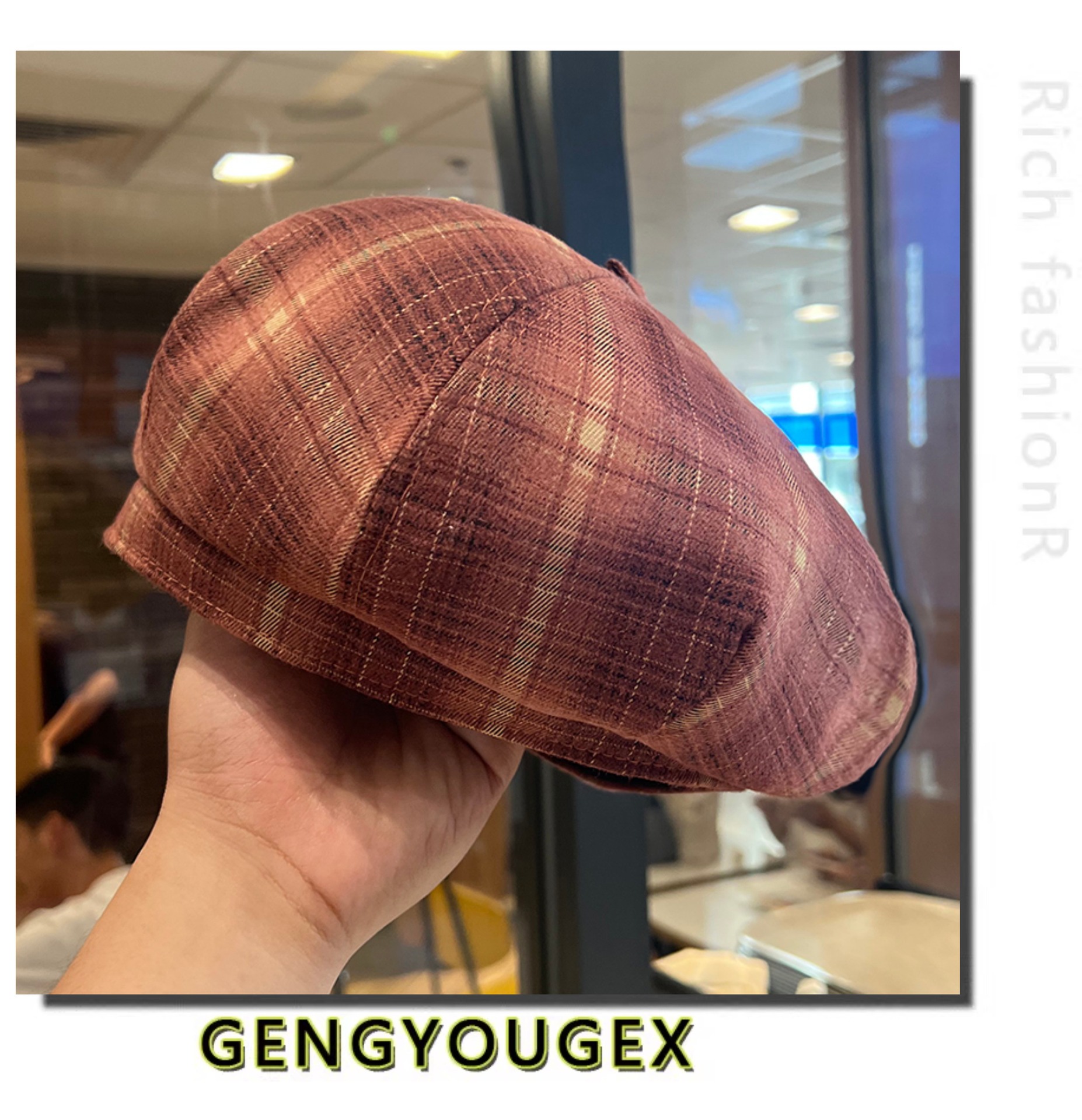 レトロな格子縞のベレー帽の女性の秋冬のカジュアルな百合のつぼみの八角の帽子の韓国版は買い物をして顔の小さいカボチャの帽子を現します。