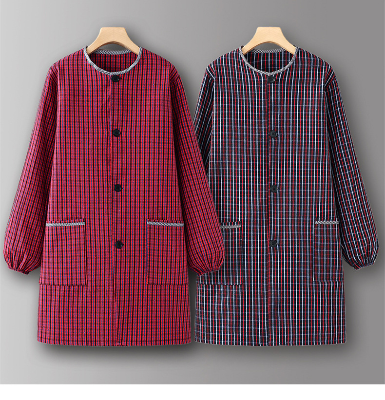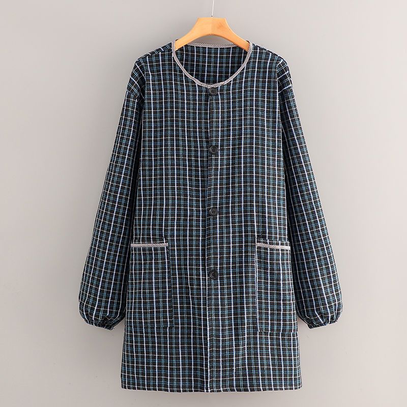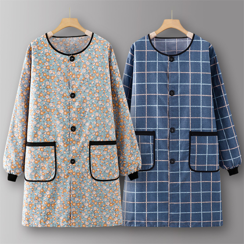 純綿の厚手の粗布カバーの女性は長袖のエプロンを着て仕事をして清潔な作業服を着ています。