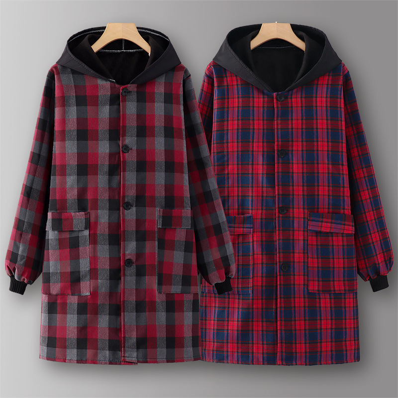 ネット赤女性カバー服冬にベルベットを厚くして保温防水防油エプロン長袖フード付き作業服秋冬仕事
