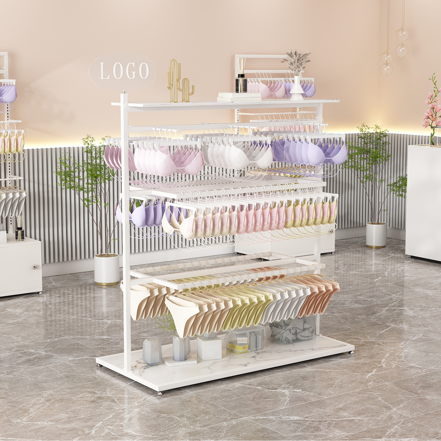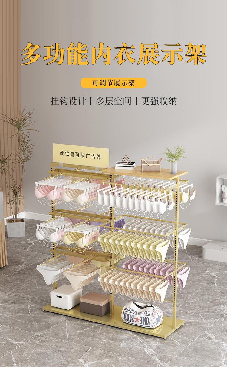 内裤架子展示架店铺中岛落地式多功能内衣架可调节双面挂文胸货架