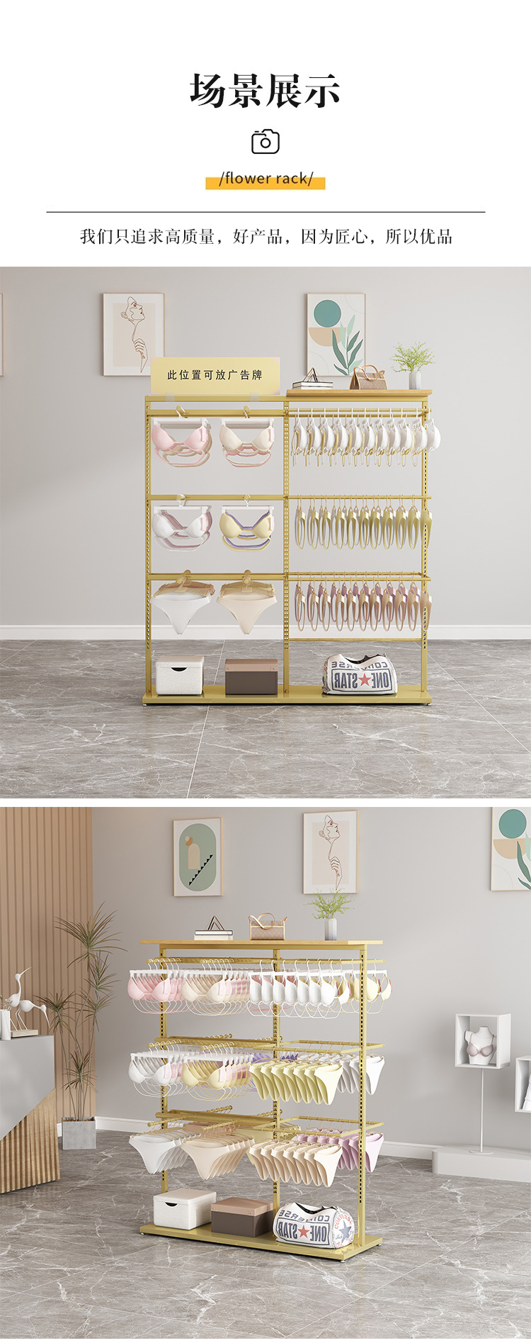 高級下着店は棚の展示棚を調節できます。