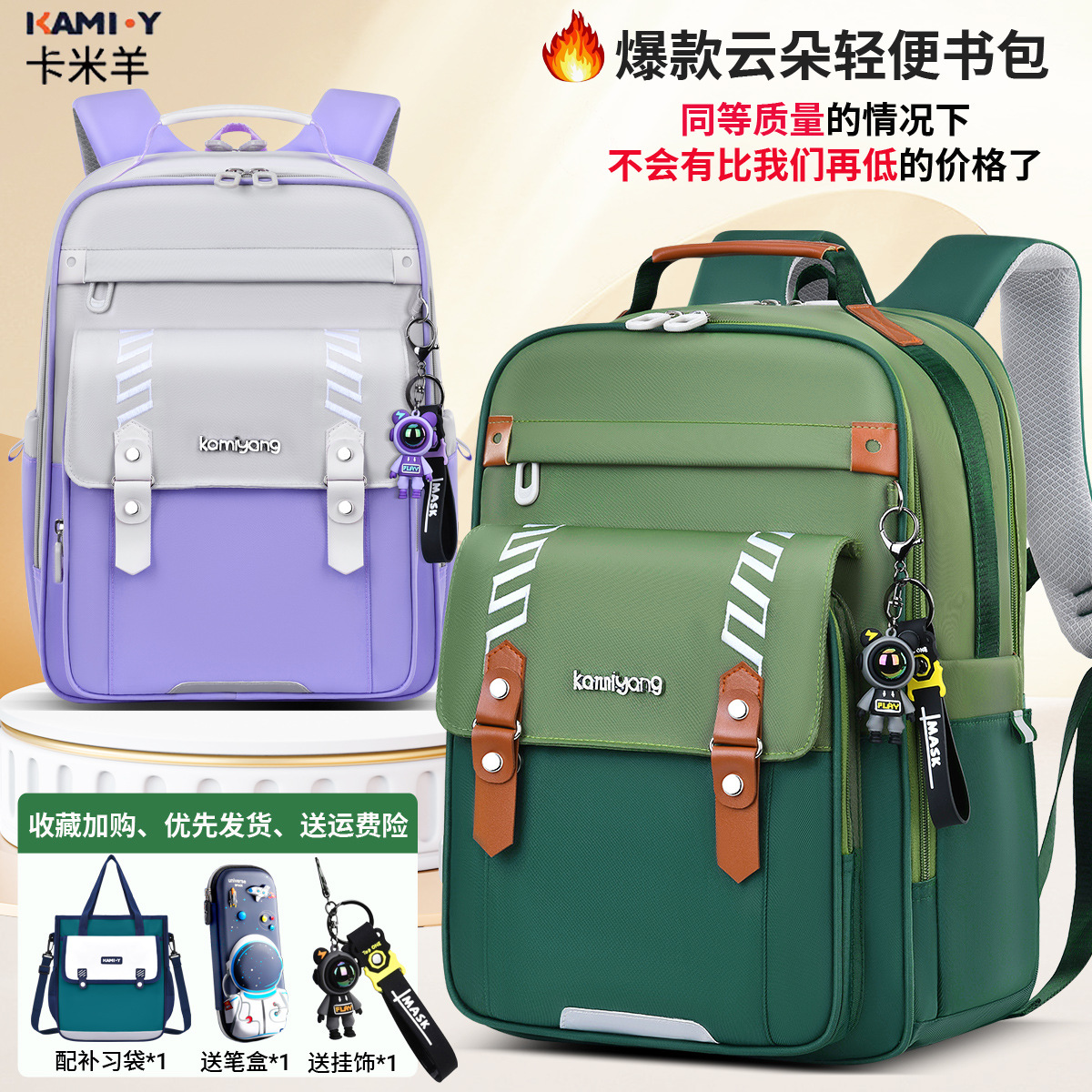 卡米羊1—6年级小学生男女孩减负云朵防下坠书包2025新款轻便护脊
