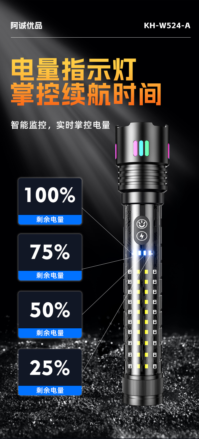 3.在使用中,当手电筒的亮度发生明显的变化时要关闭手电筒,防止造成电池电量过放,并及时充电;注意电池的防水,防潮,防摔等,充电时根据充电器的充电快慢,指示灯变后,及时取出,不要过冲;