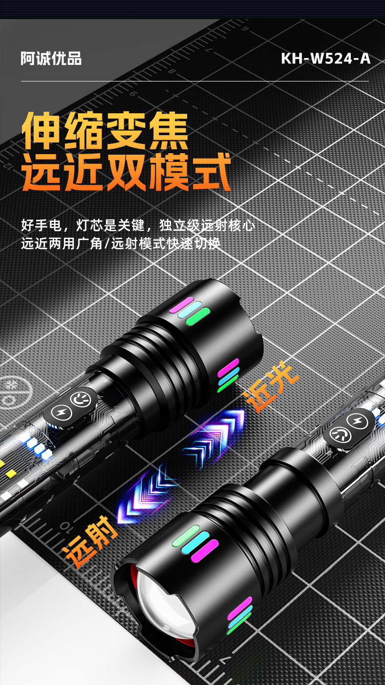 7.非专业人员请勿拆解手电筒,以防破坏线路板。