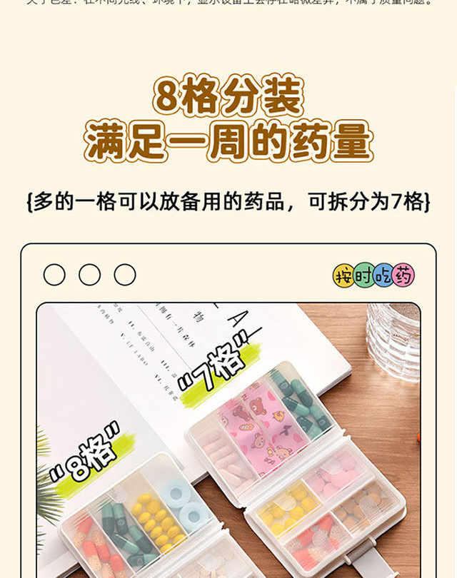 旅行用携帯薬箱一週間七日間分注箱ピルカプセル分類箱ミニ携帯薬収納箱