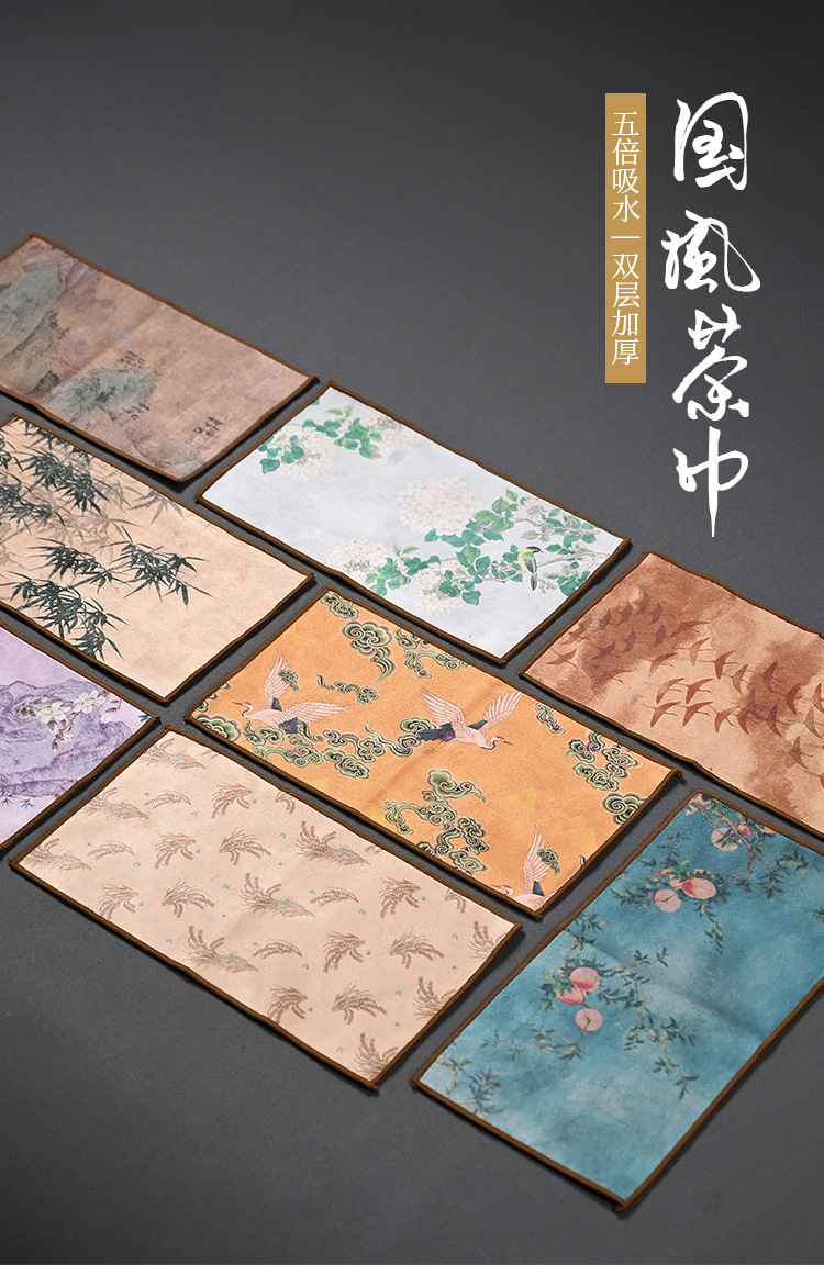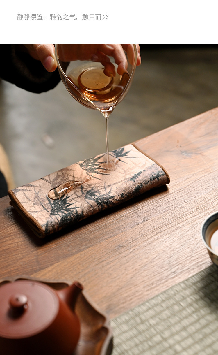 禅意茶巾布厚手吸水高級茶布スエードプリント茶卓雑巾専用茶マット茶具部品
